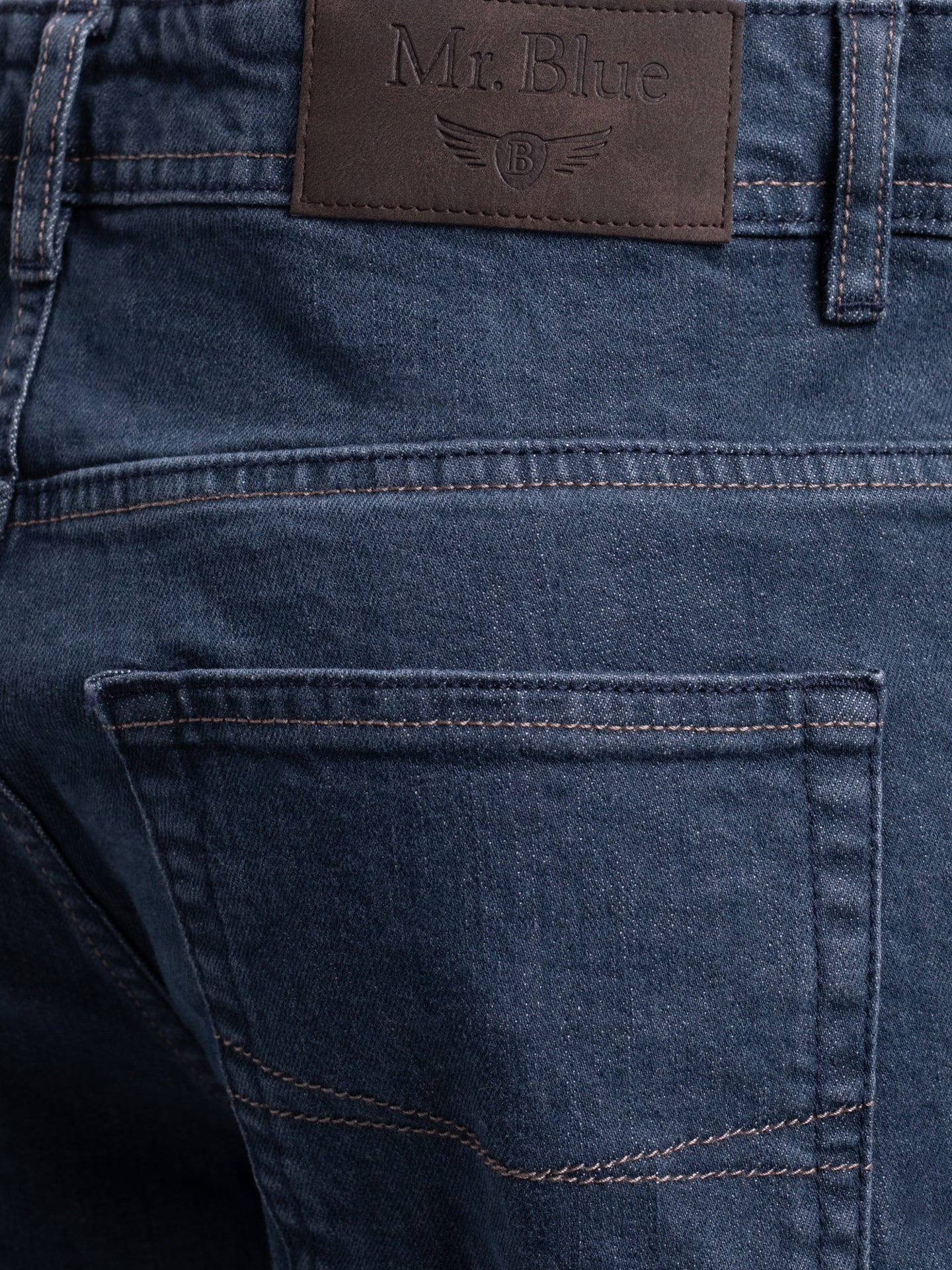 Calças de ganga cintura subida azul denim em tencel e algodão