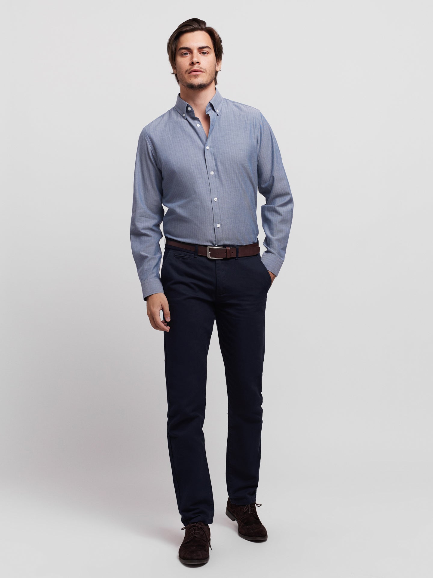 Camisa Algodão Azul Manga Comprida Tailored Fit