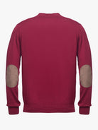 Cardigan para homem liso bordeaux com fecho botões e pormenor placket e cotoveleiras em beige escuro. Confecionado em tecido de algodão e caxemira. Corte casual, gola em bico, manga comprida e acabamentos canelados.
