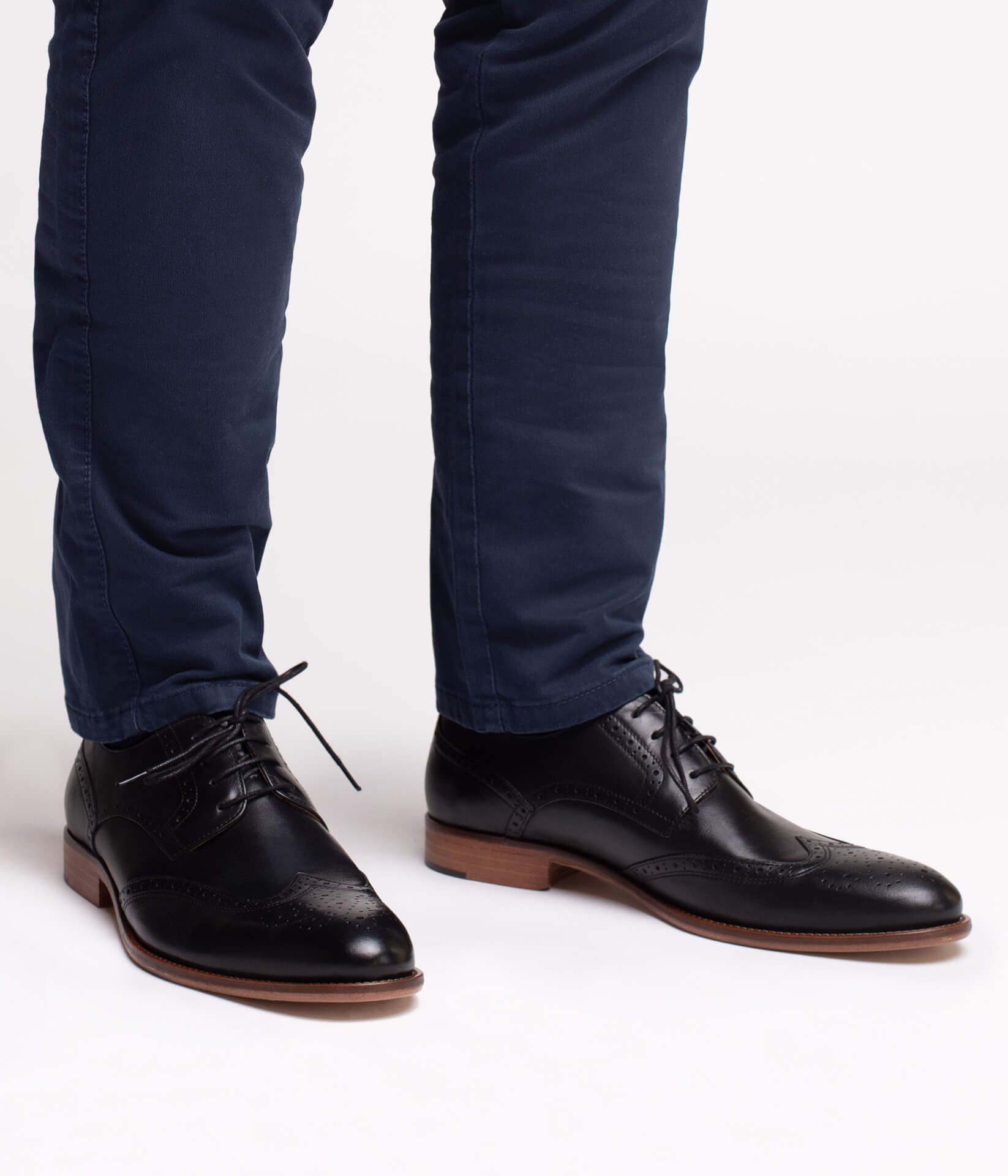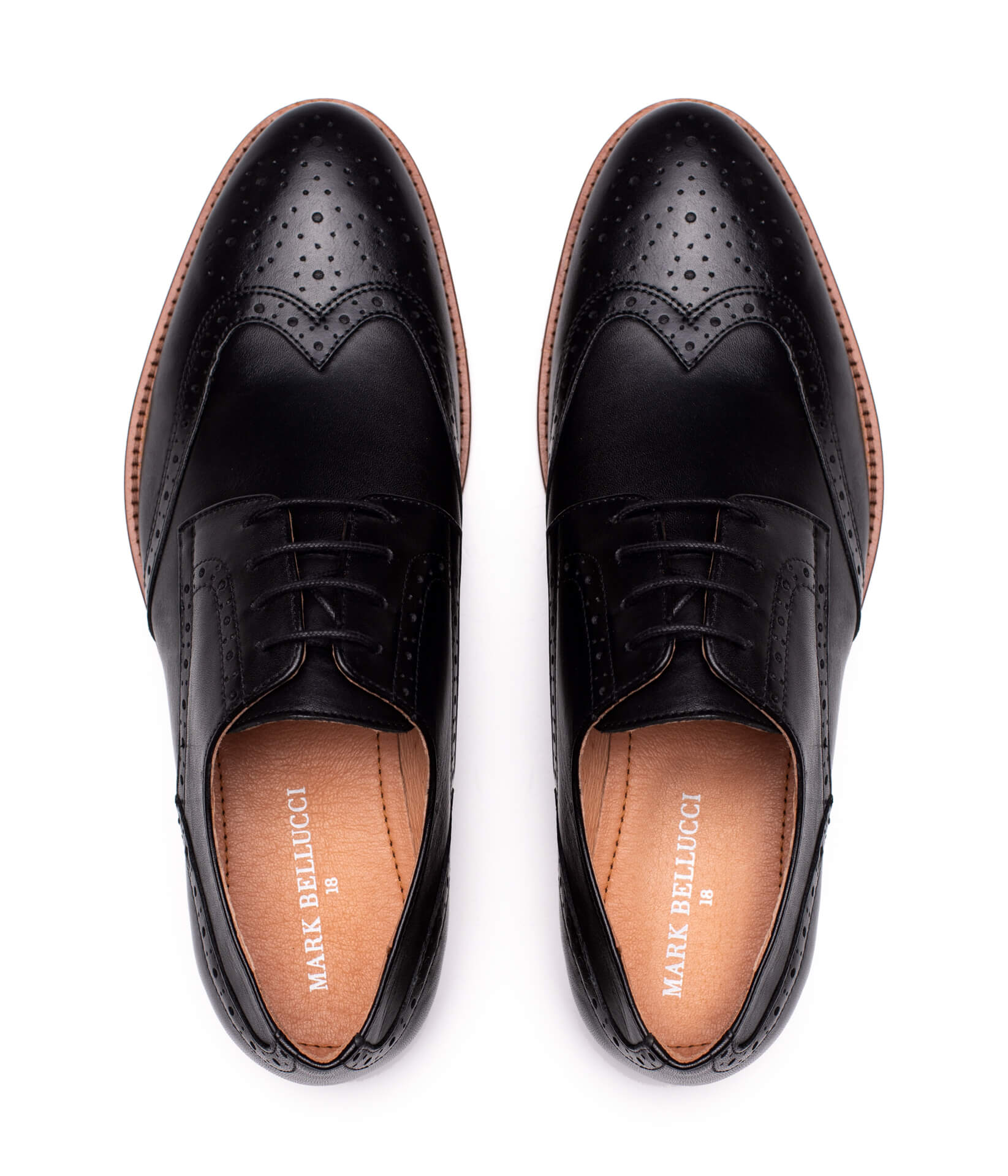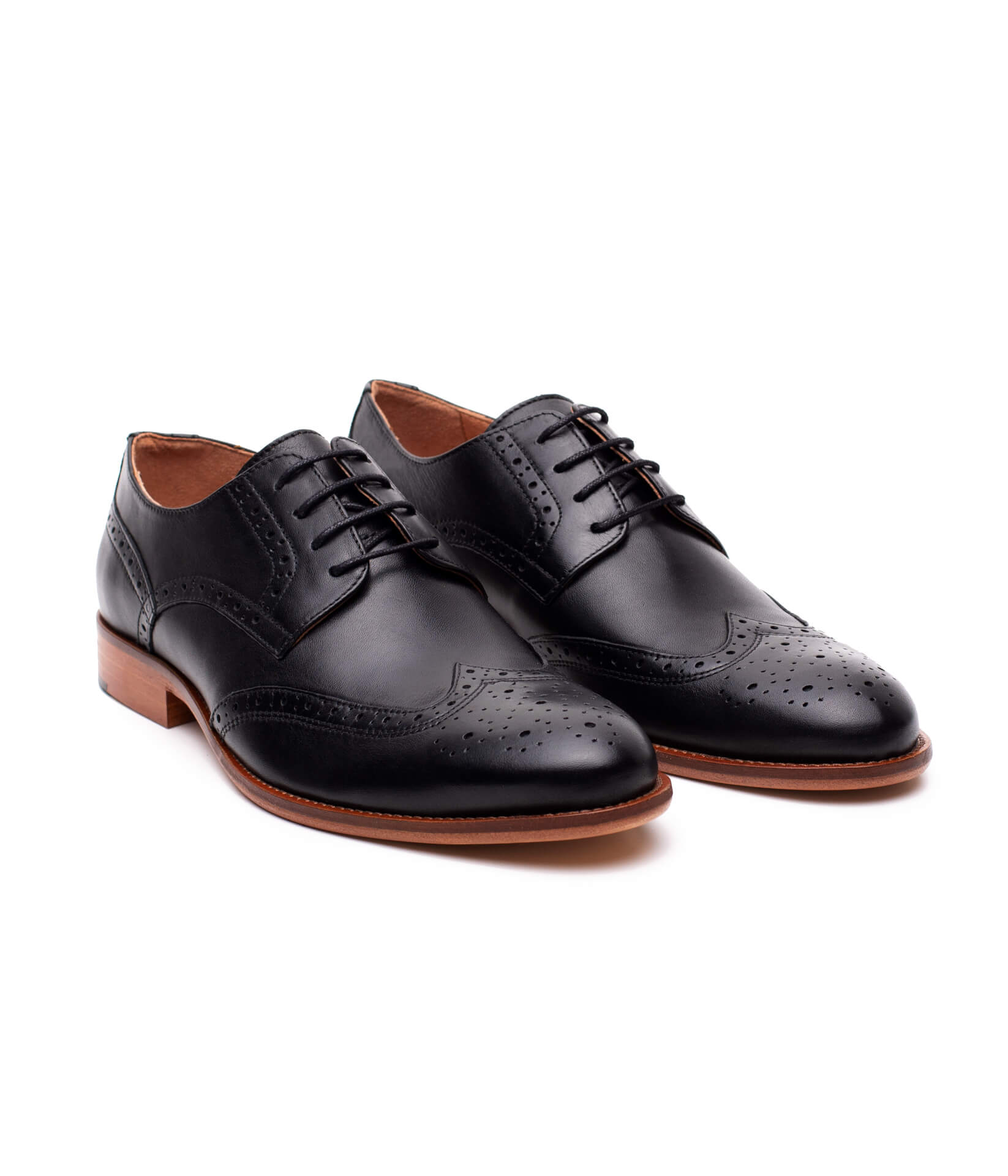 This elegant oxford shoe pure leather and leather sole, consists of a perforated texture and impressive finishes that exude elegance and modernity. Display in: Black leather and leather sole (black) dark brown leather and leather sole (cas