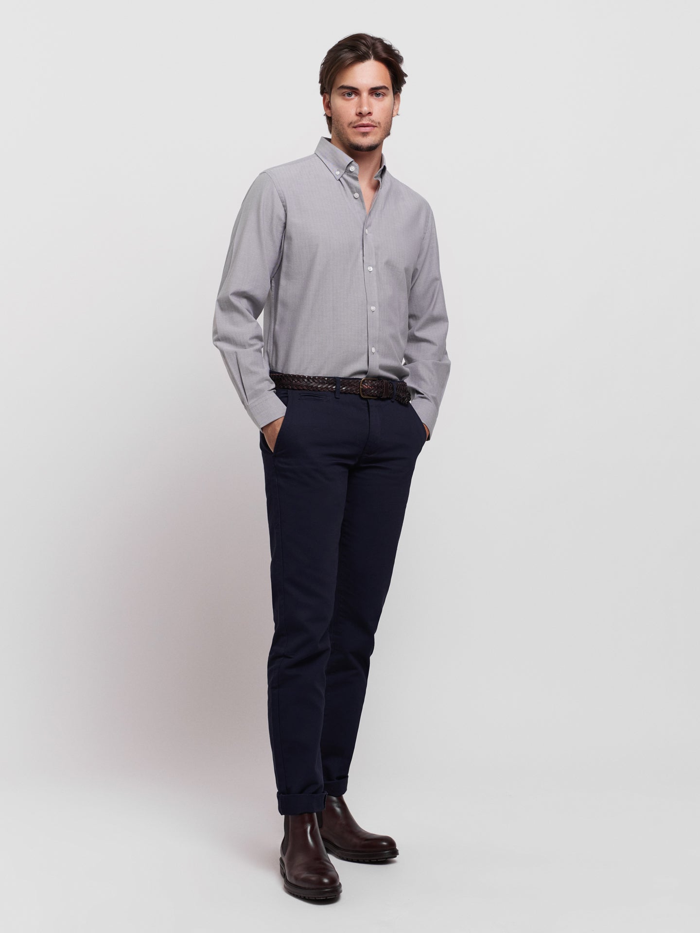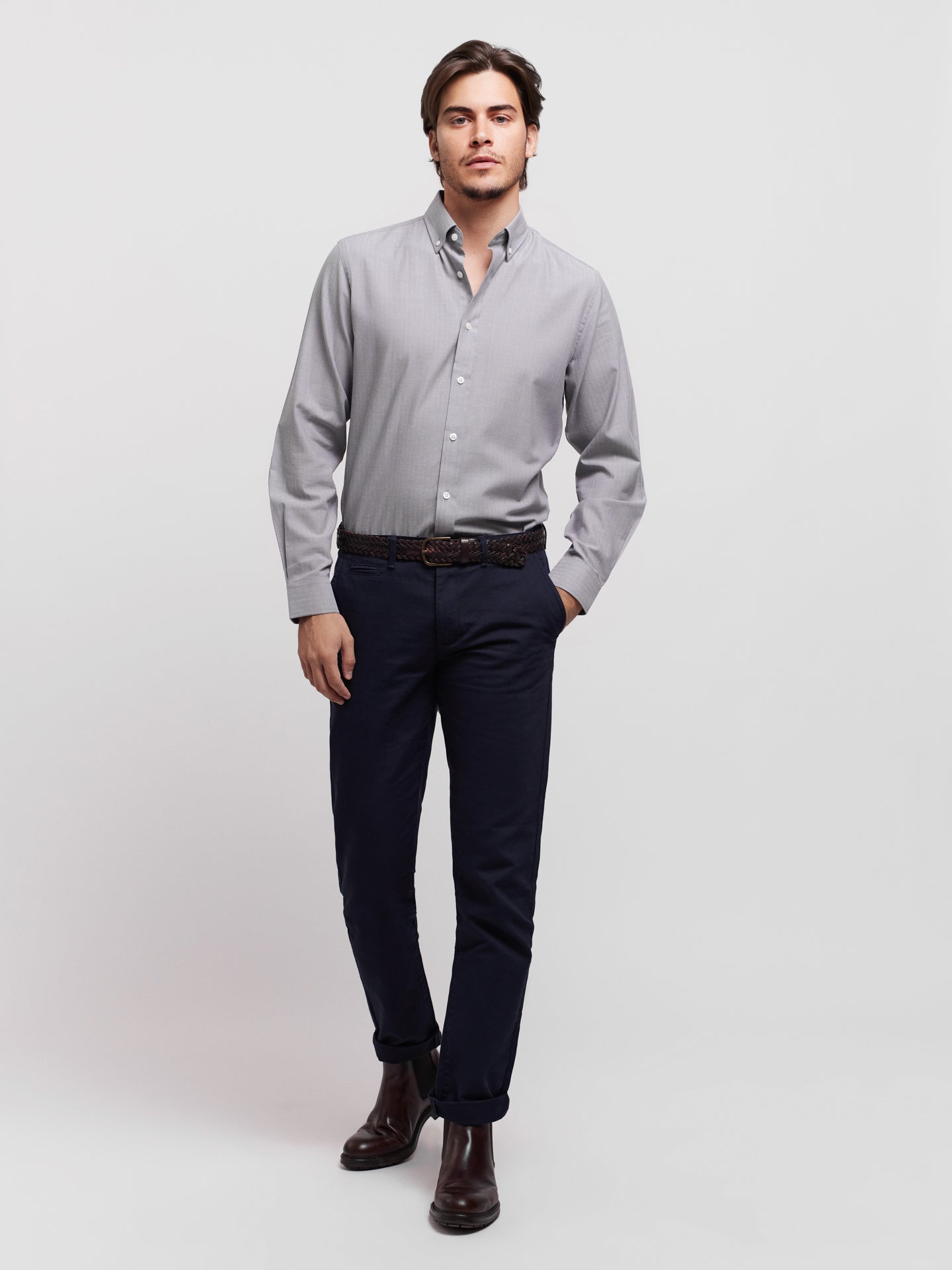Tailored Fit Shirt Gray Long Sleeve Long Smooth