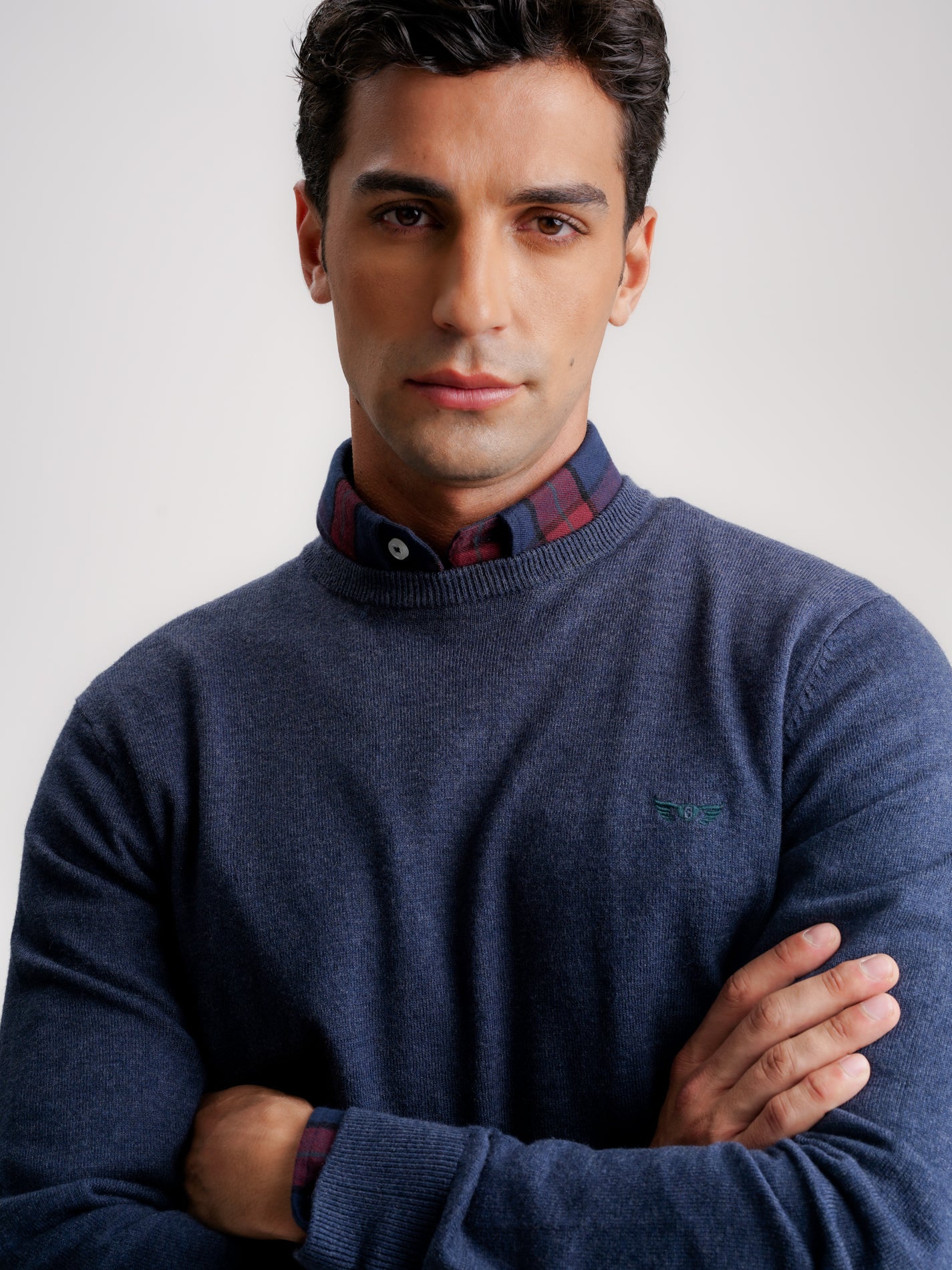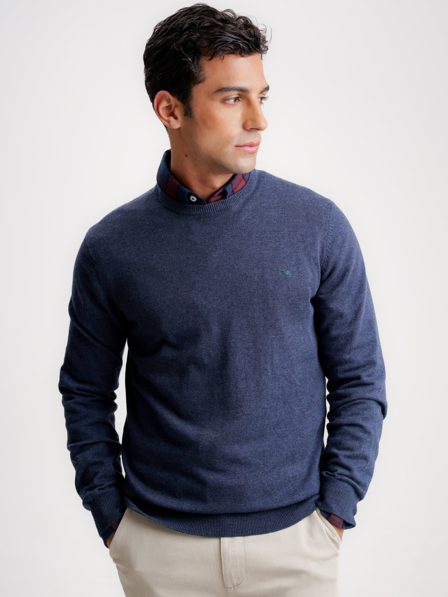 Pullover Wool Merino Fine Smooth Blue With Logo