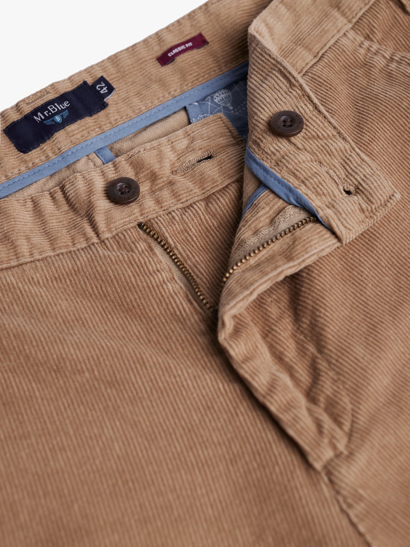 Plain Cotton Beige Regular Fit Bombazine Trousers