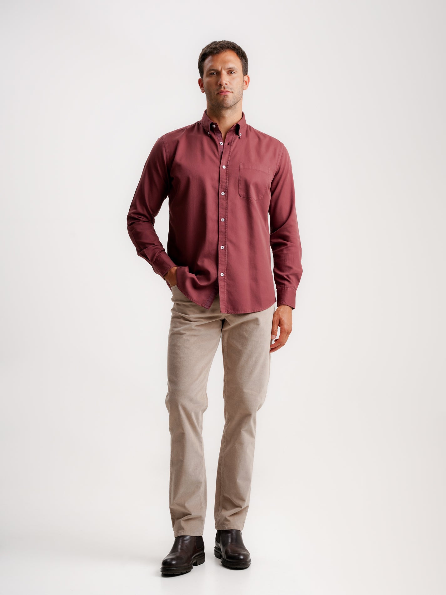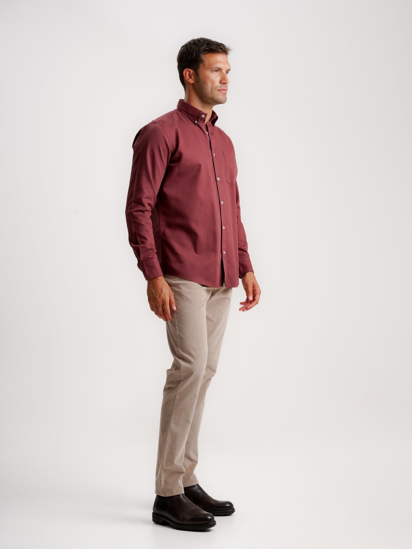 Regular Fit Structured Red Long Sleeve Shirt With Plain Pocket