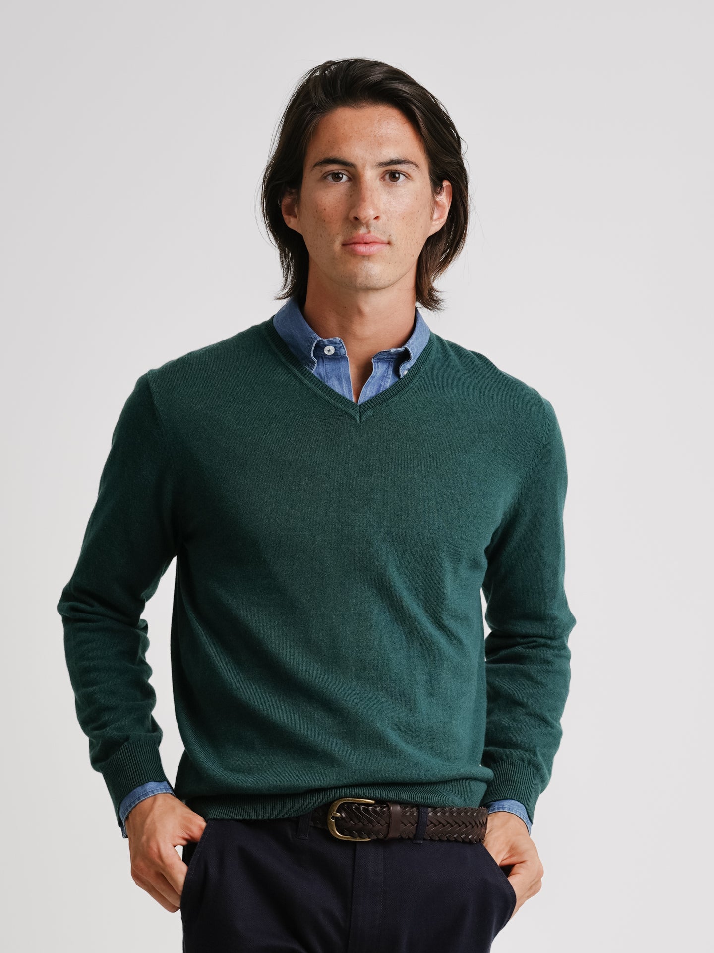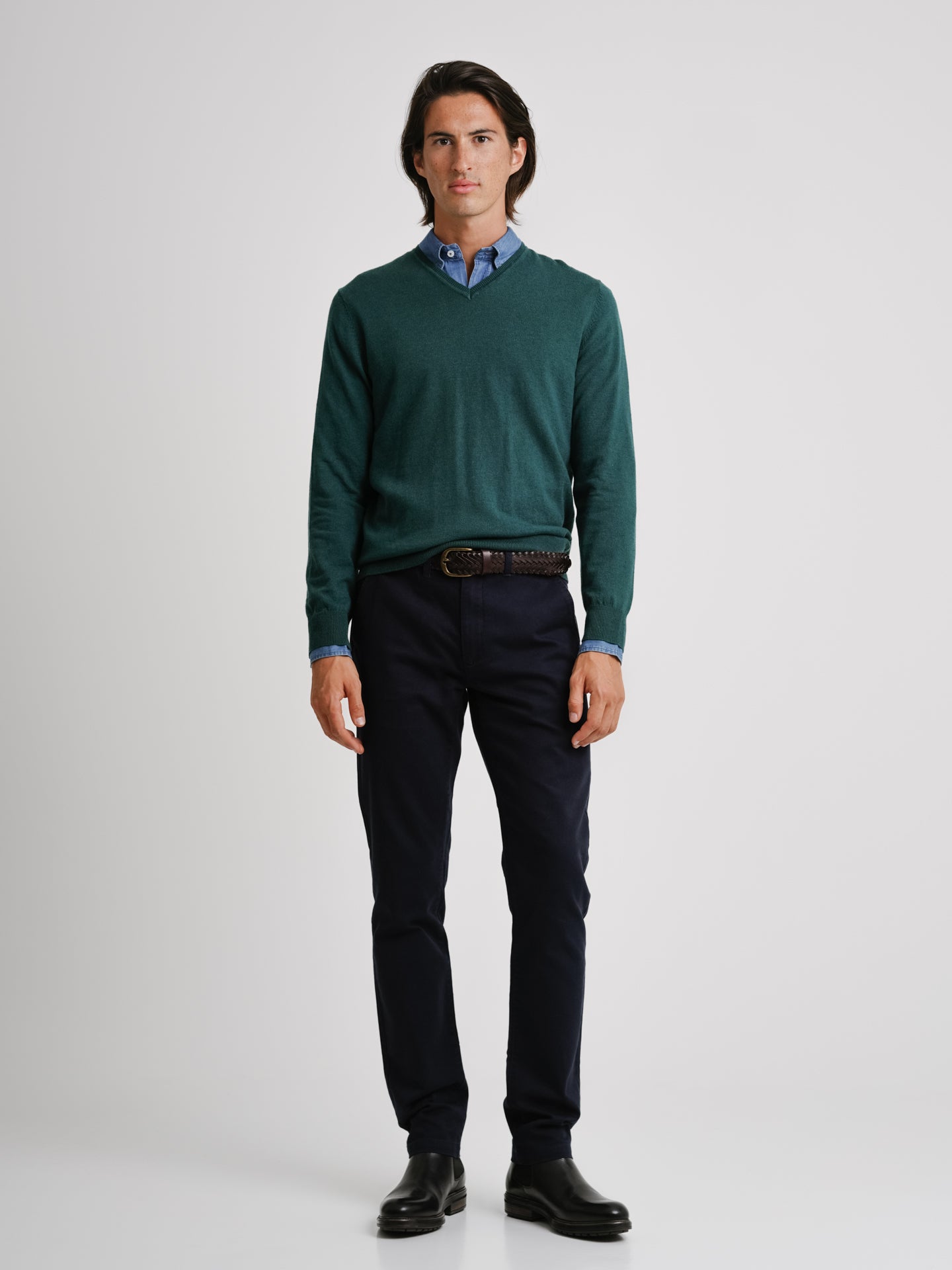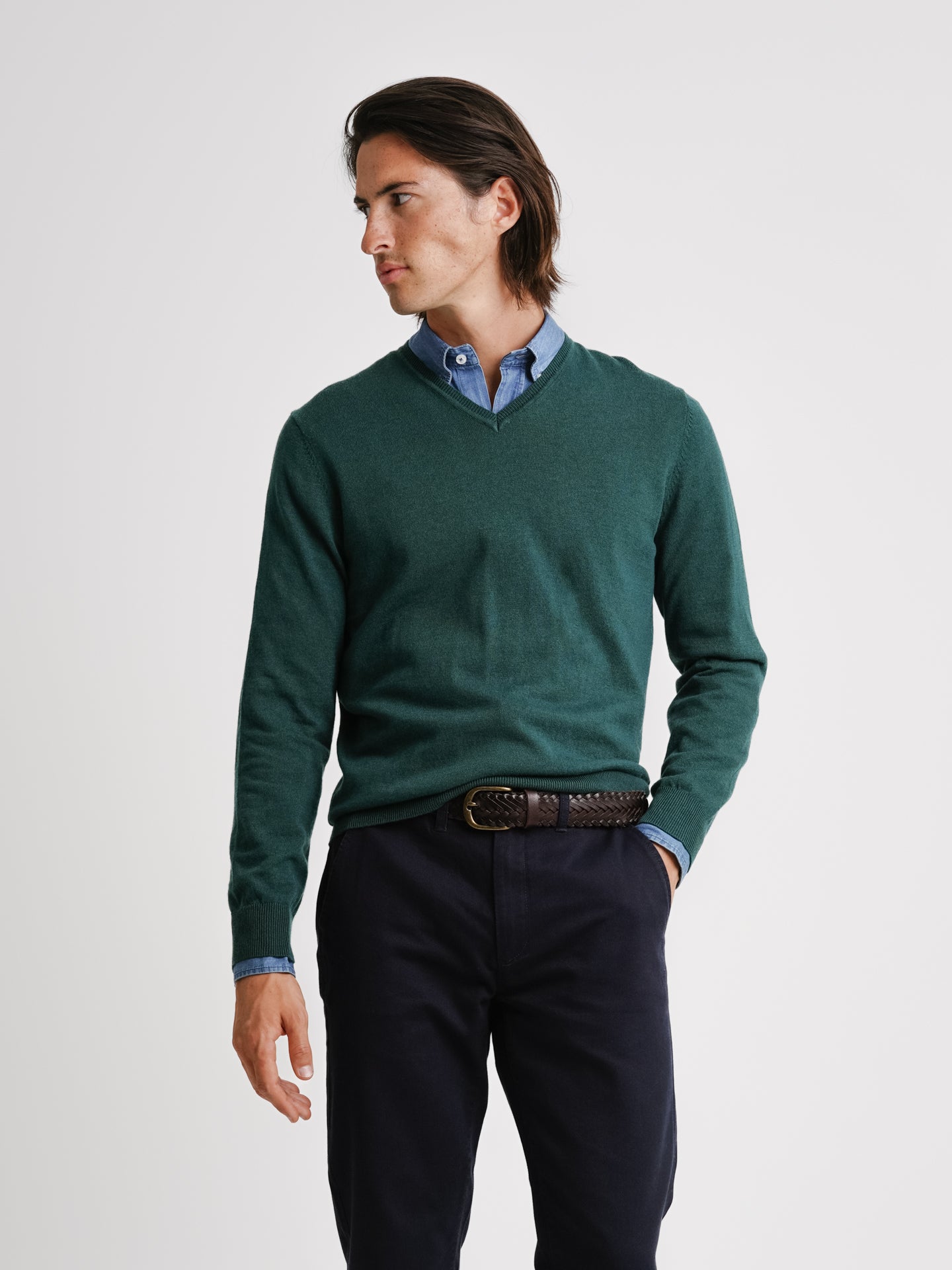 Pullover Merino Wool Slim Green Plain Merino Wool