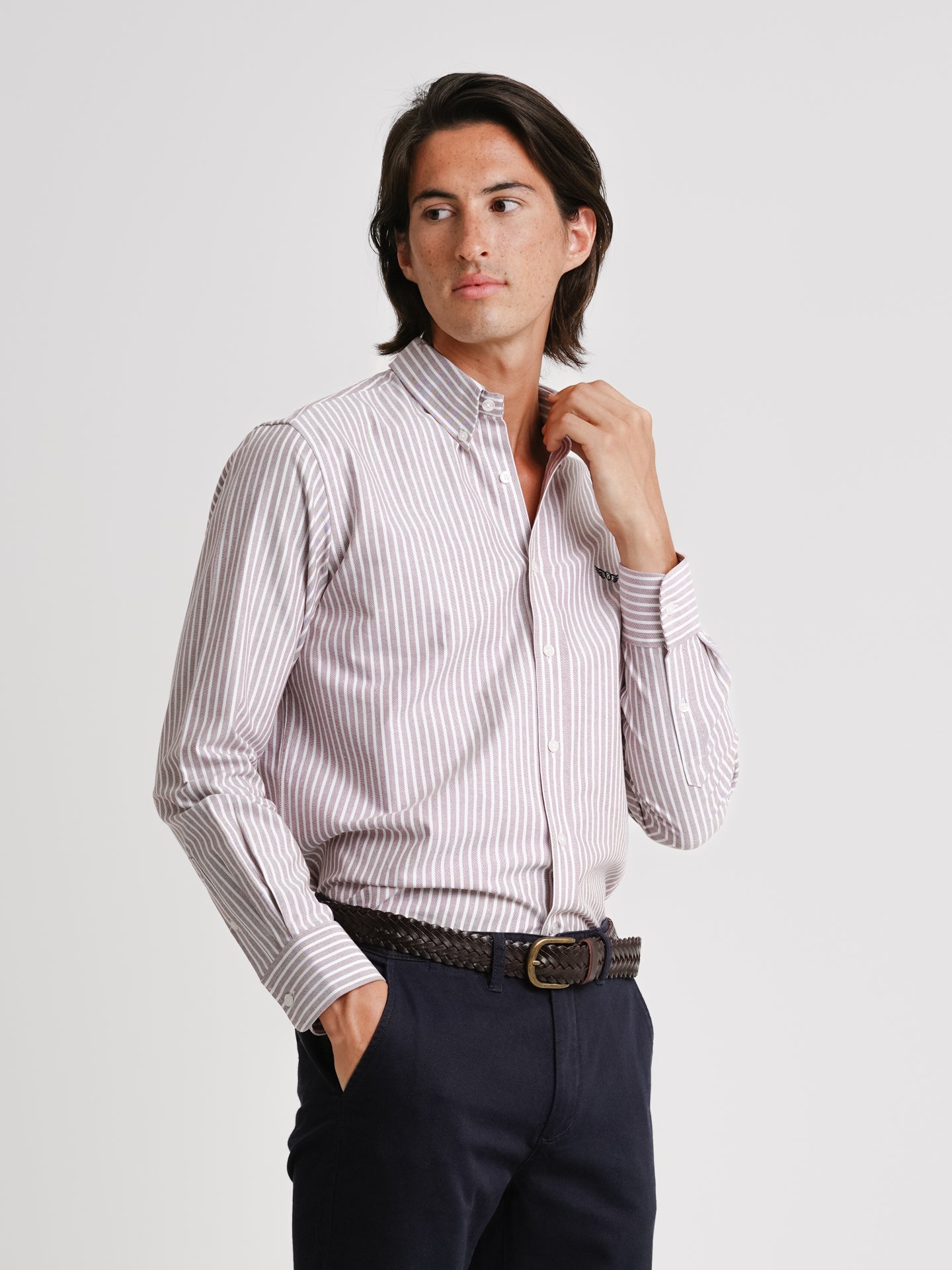Regular fit oxford chestnut cotton stripes with logo