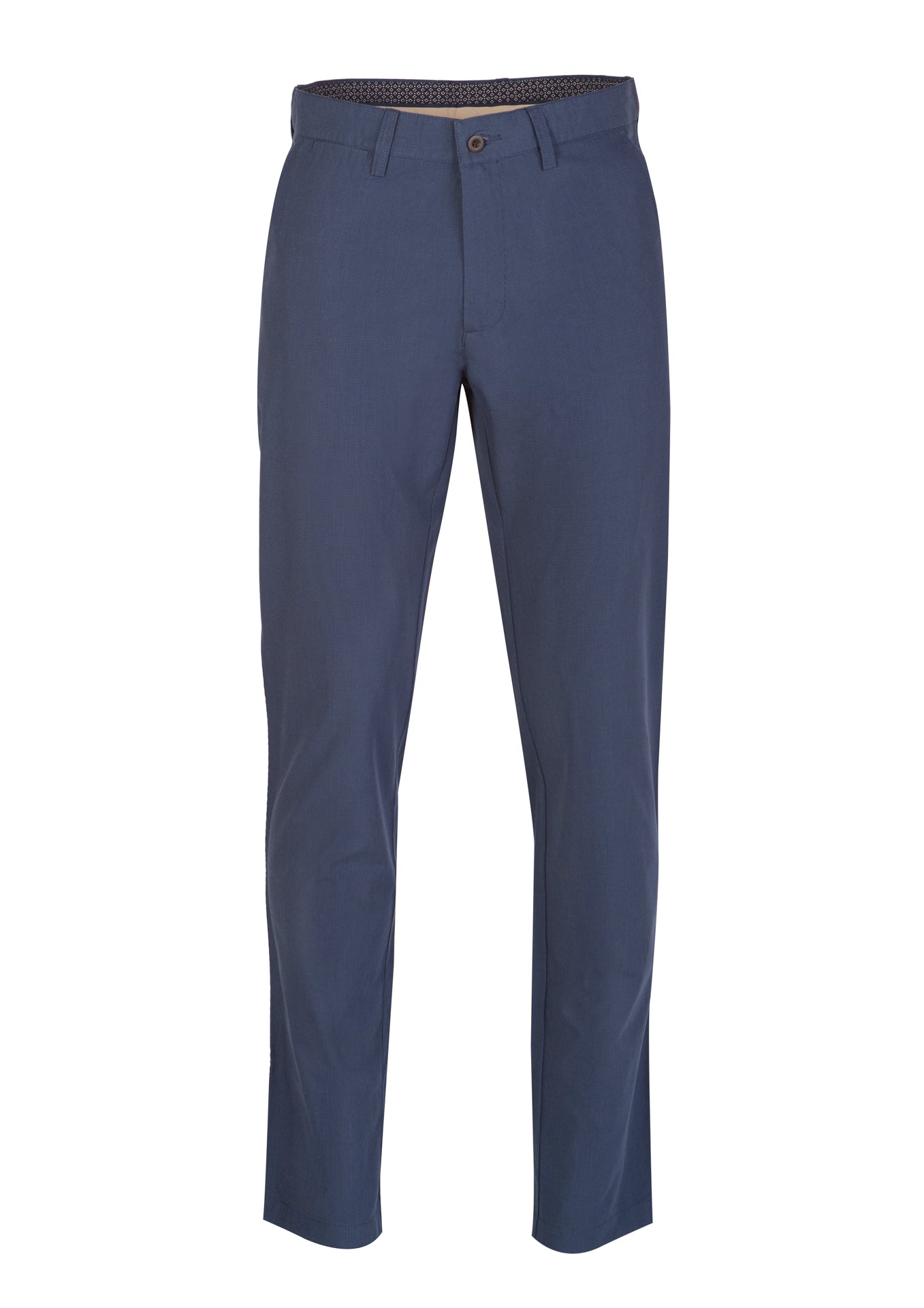Dark blue chino pants for men, made of cotton. Slim cut, button closure and concealed zipper by carcass, two side pockets and one small pocket. Two back buttoned buttonhole pockets and belt loops. Very comfortable.