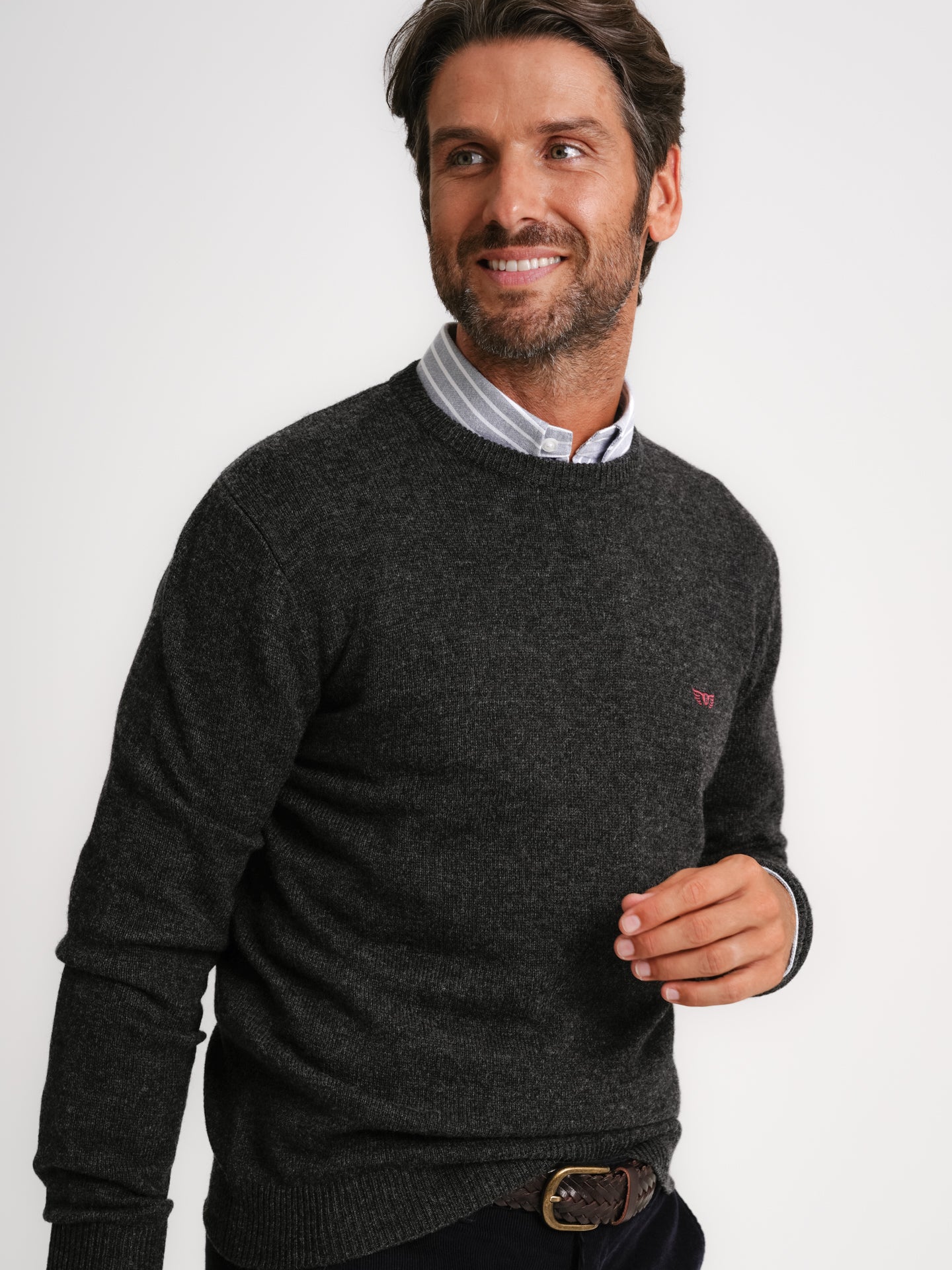 Grey thick wool pullover plain sweater with logo China manufacturer