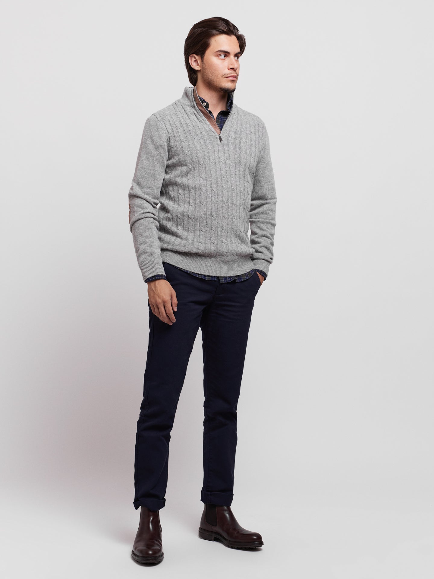 Long -sleeved gray pullover