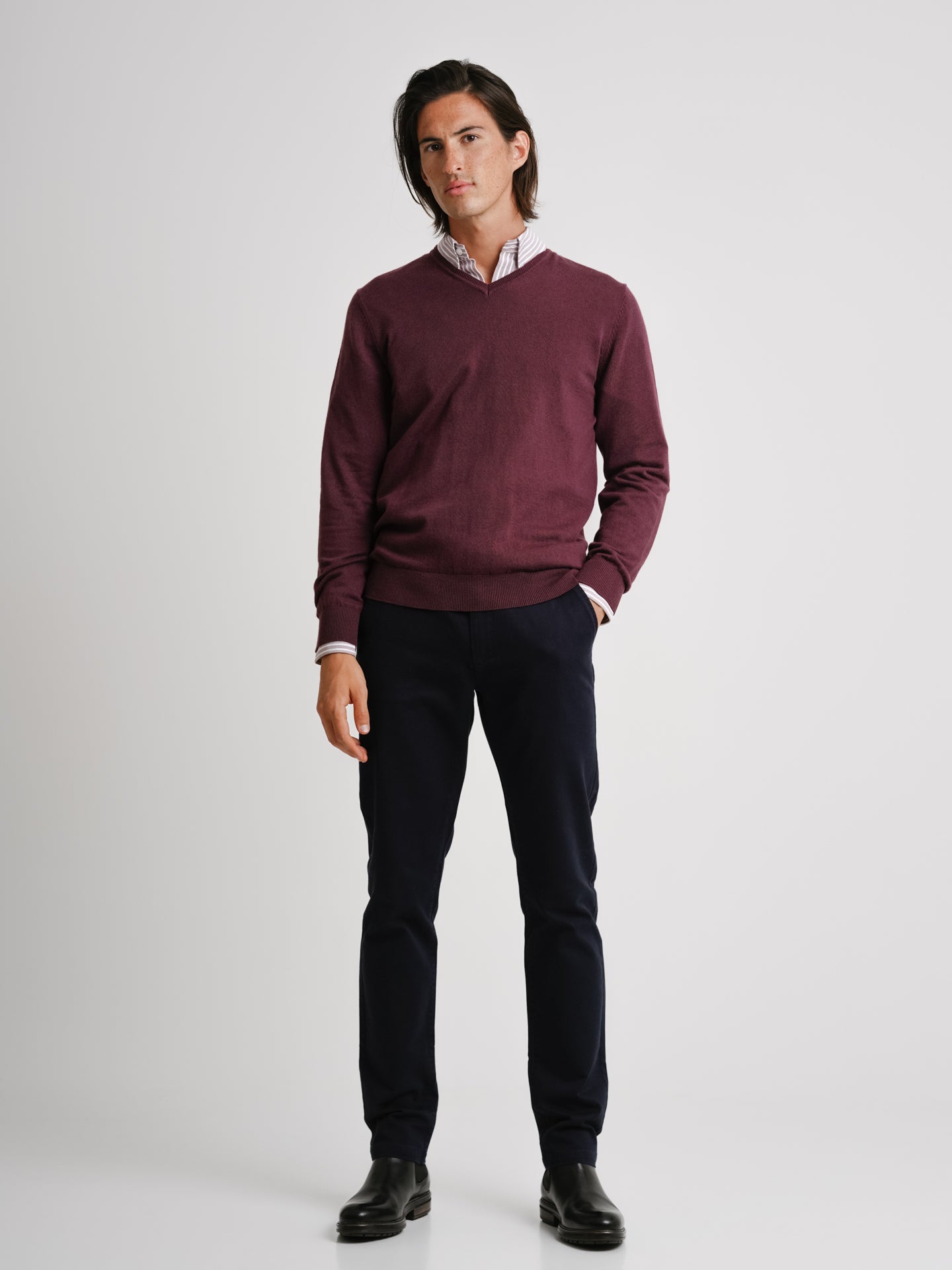 Burgundy Slim Merino Wool Pullover