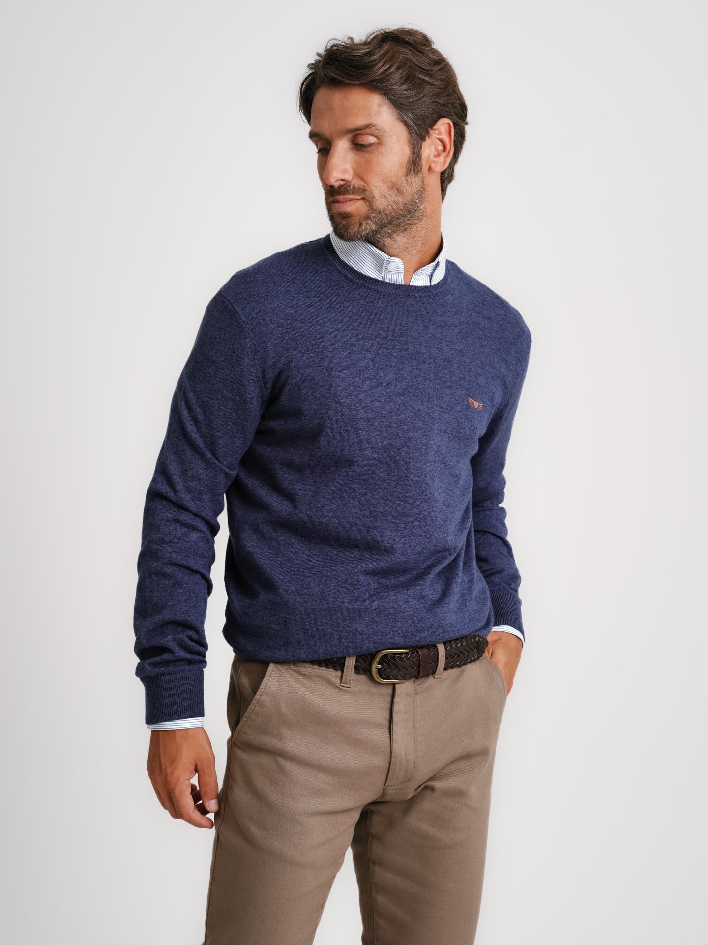 Slim cashmere pullover blue plain cashmere with logo China manufacturer