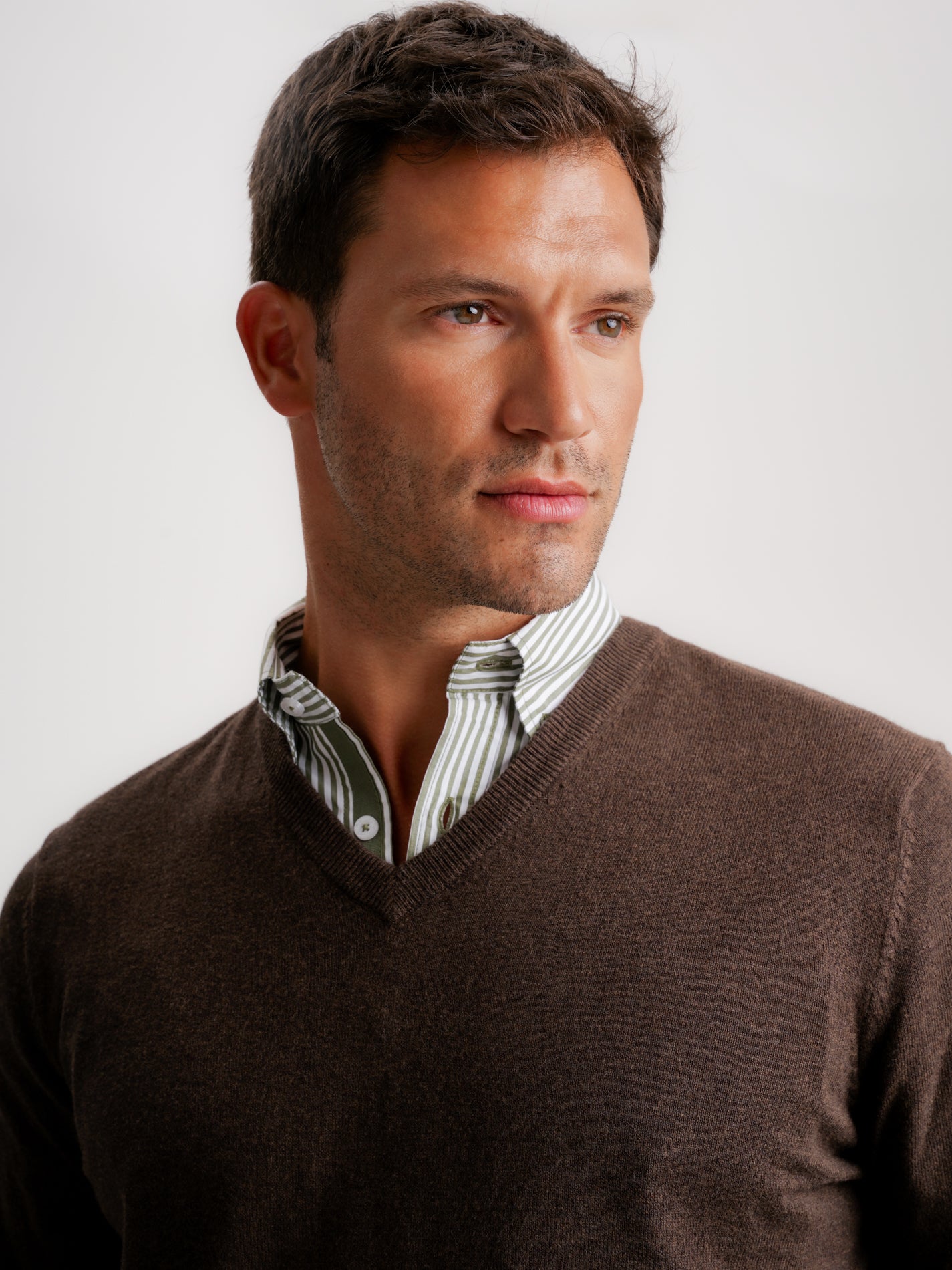 Plain brown slim cashmere Pullover without Logo and without pocket