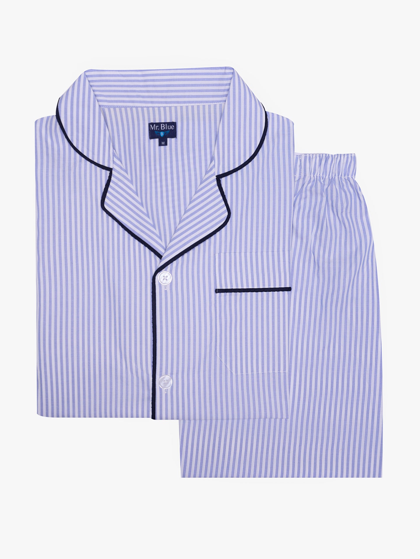Blue Cotton Pajamas Short Sleeve Regular Fit