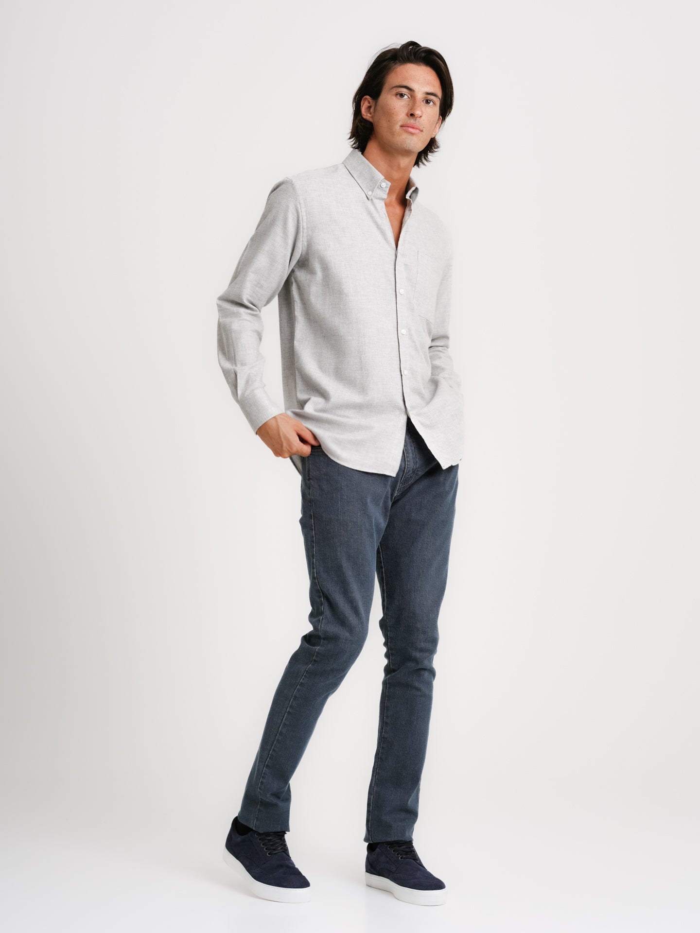 Regular Fit Grey Flannel Shirt