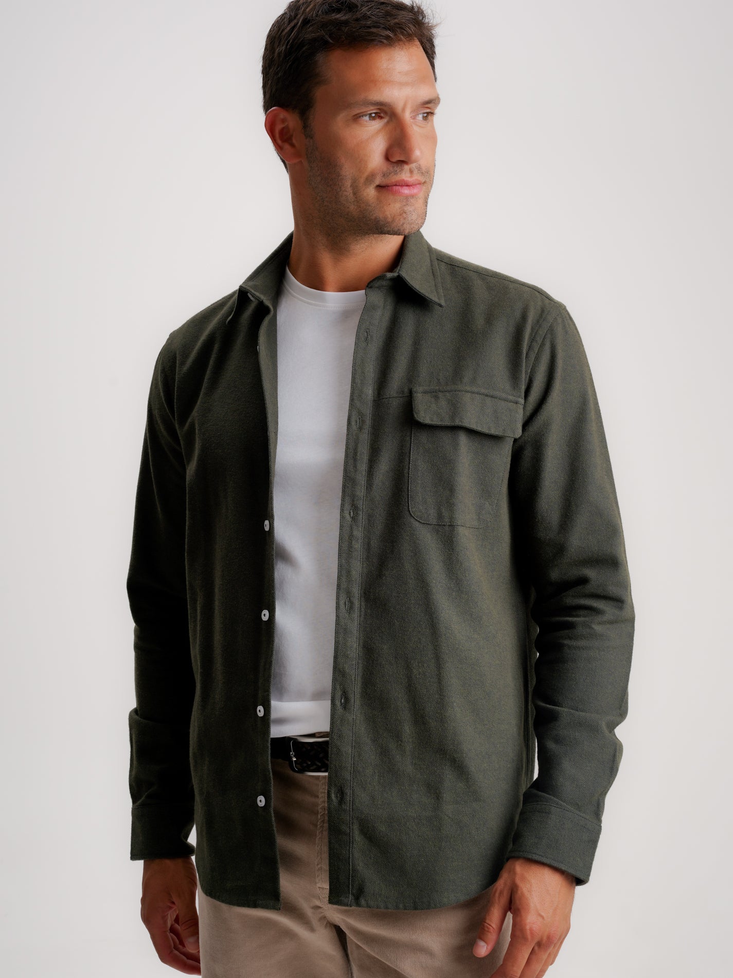 Fit Twill Green Regular Shirt