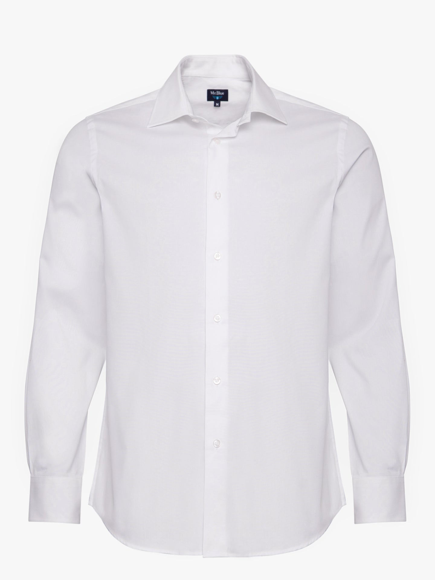 Slim Fit White Oxford Long Sleeve Shirt With Plain Logo