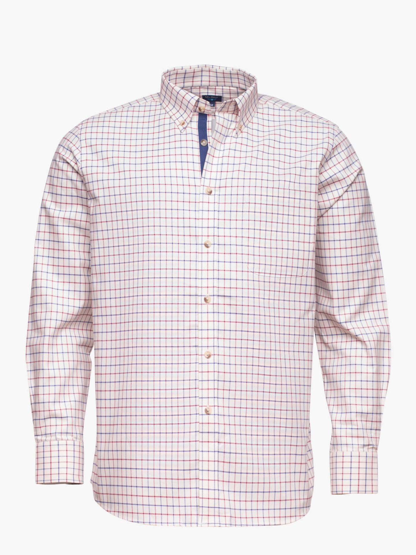 Dark blue and burgundy checkered shirt for men with navy blue pocket and placket. Made of 100% cotton fabric, buttoned collar, long sleeves. Made from natural fibers, this shirt can be worn with a pair of jeans or a pair of dress pants.