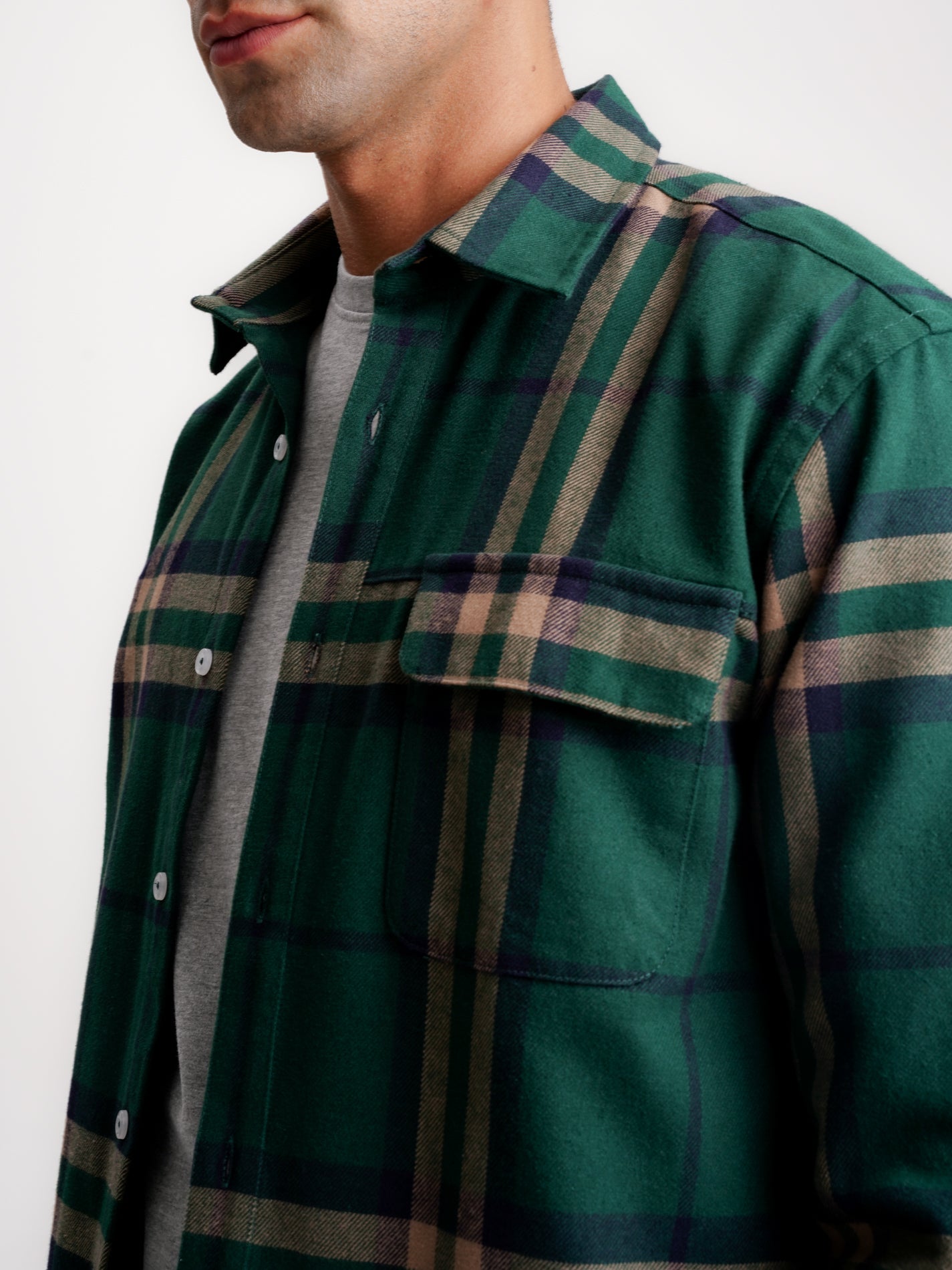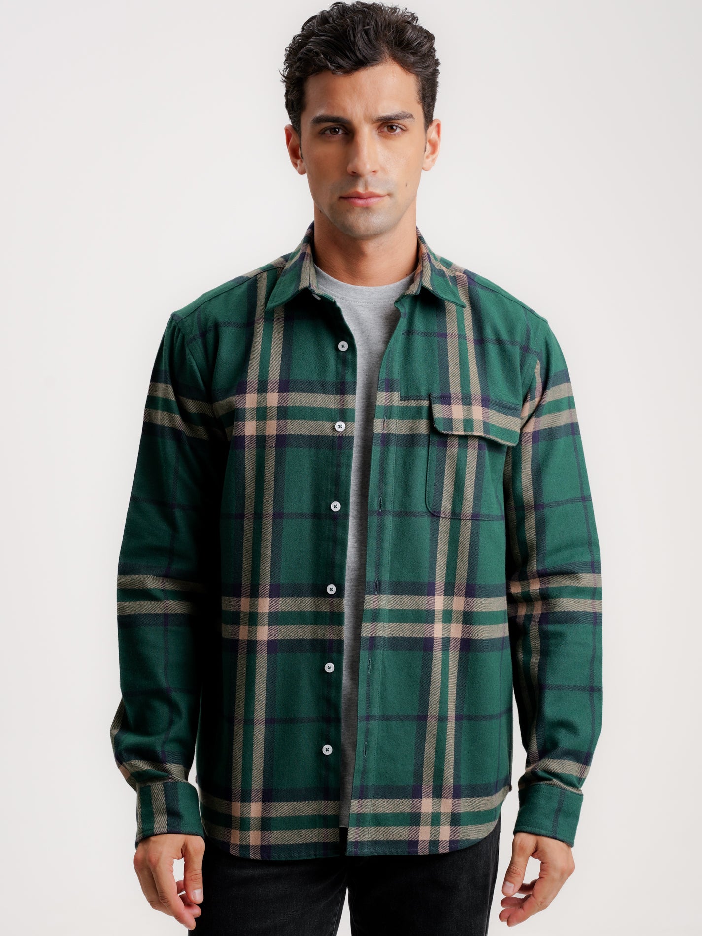 Regular overcaming fit flannel green sleeve sleeve with pockets with squares