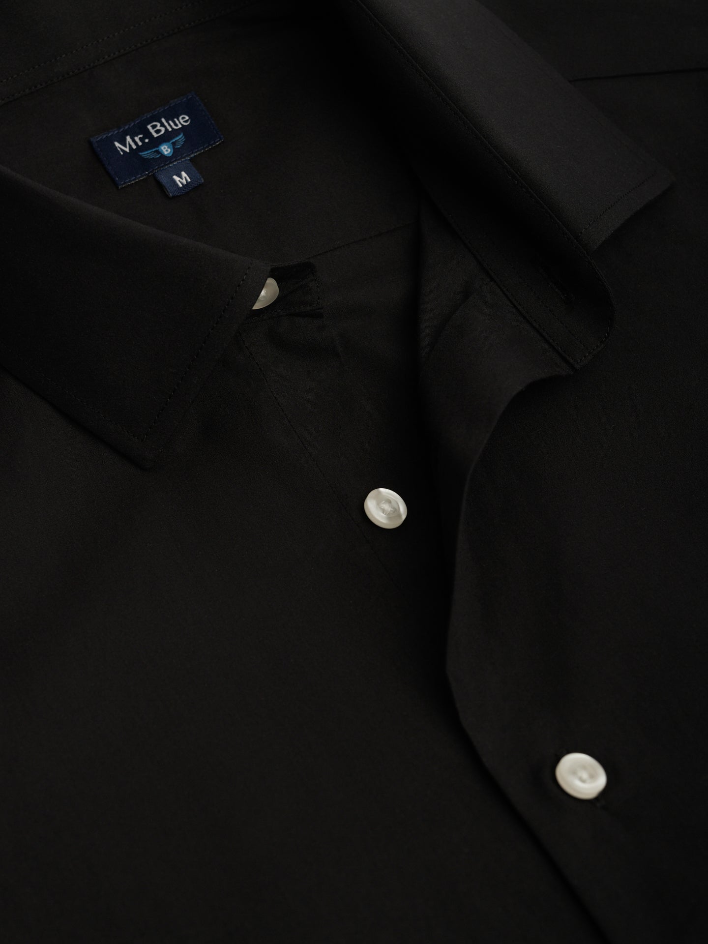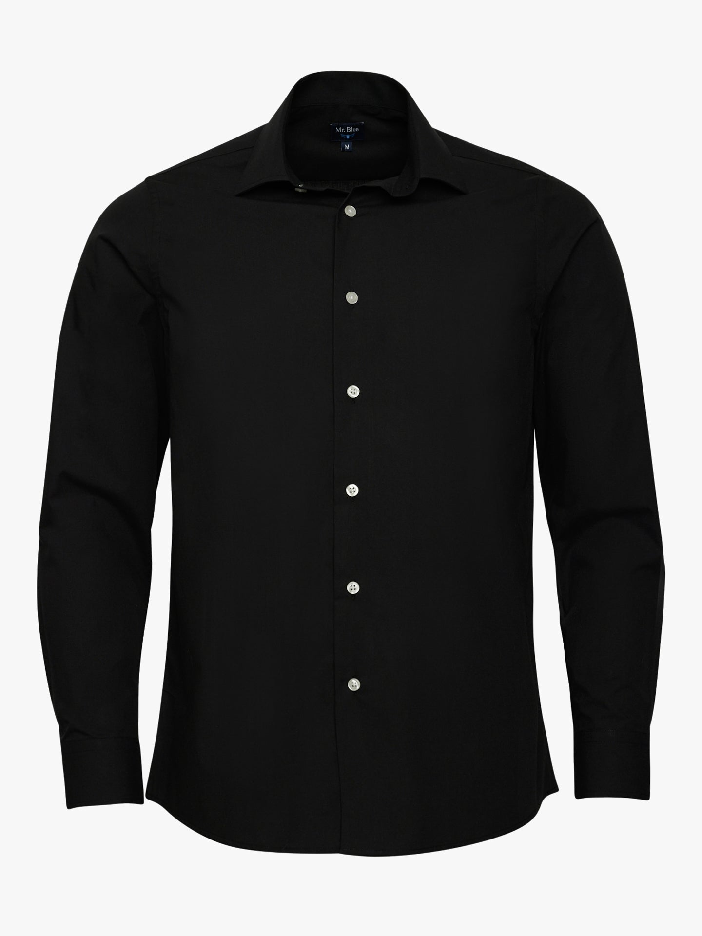 Camisa lisa de popelina de algodón negra de corte entallado