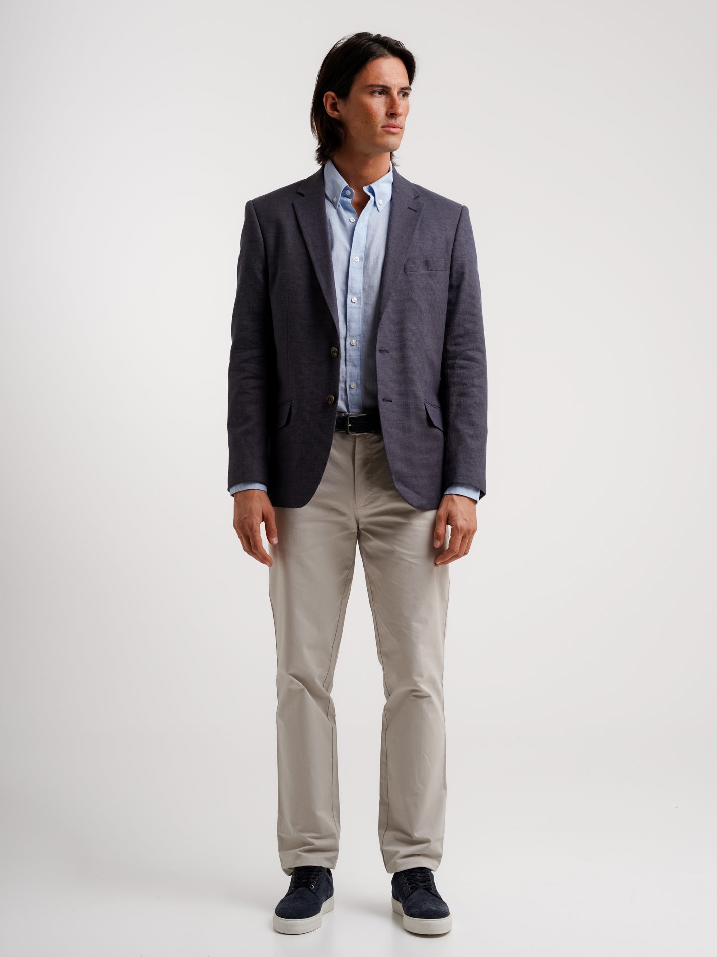 Camisa de lino azul de corte entallado
