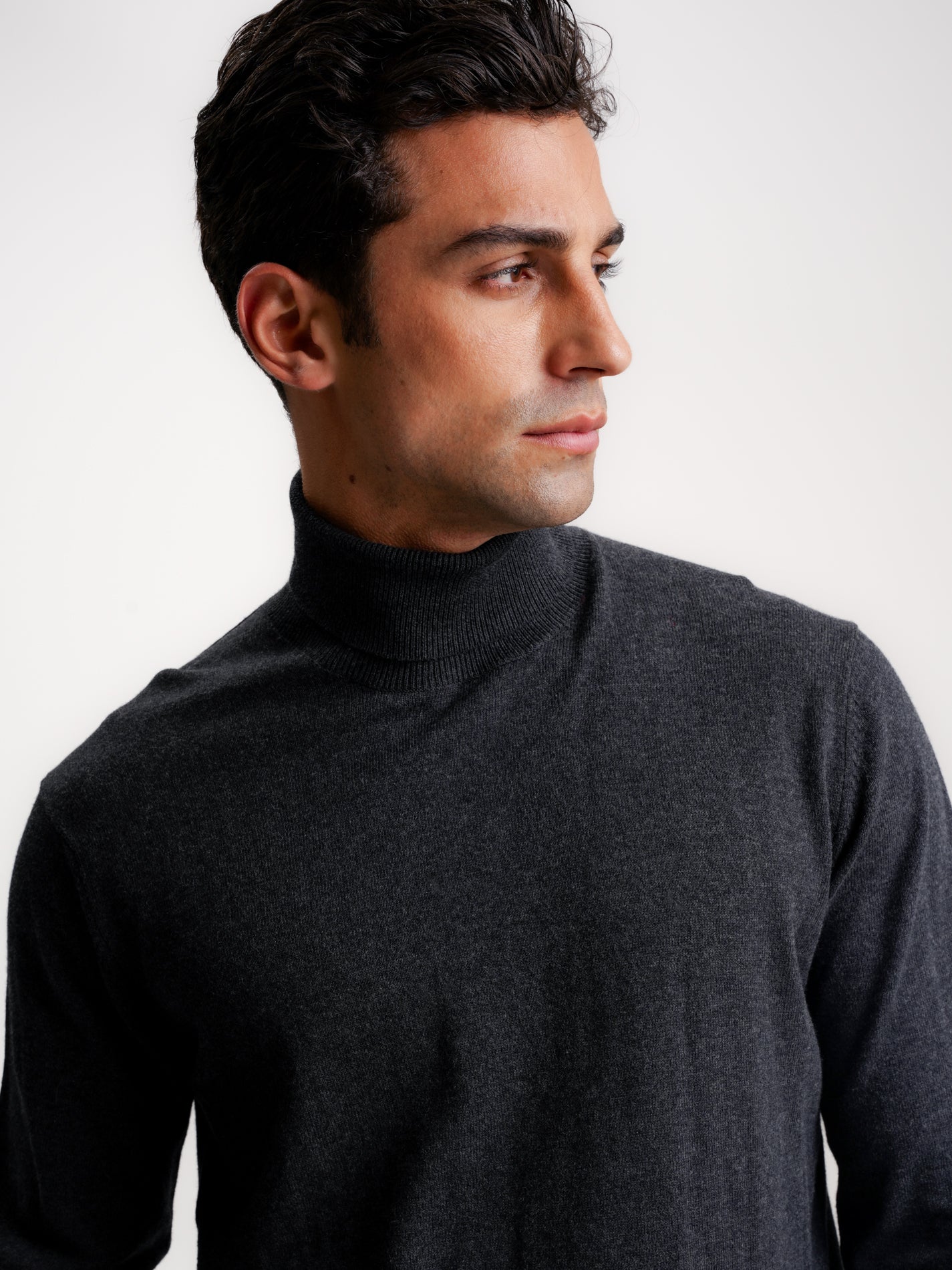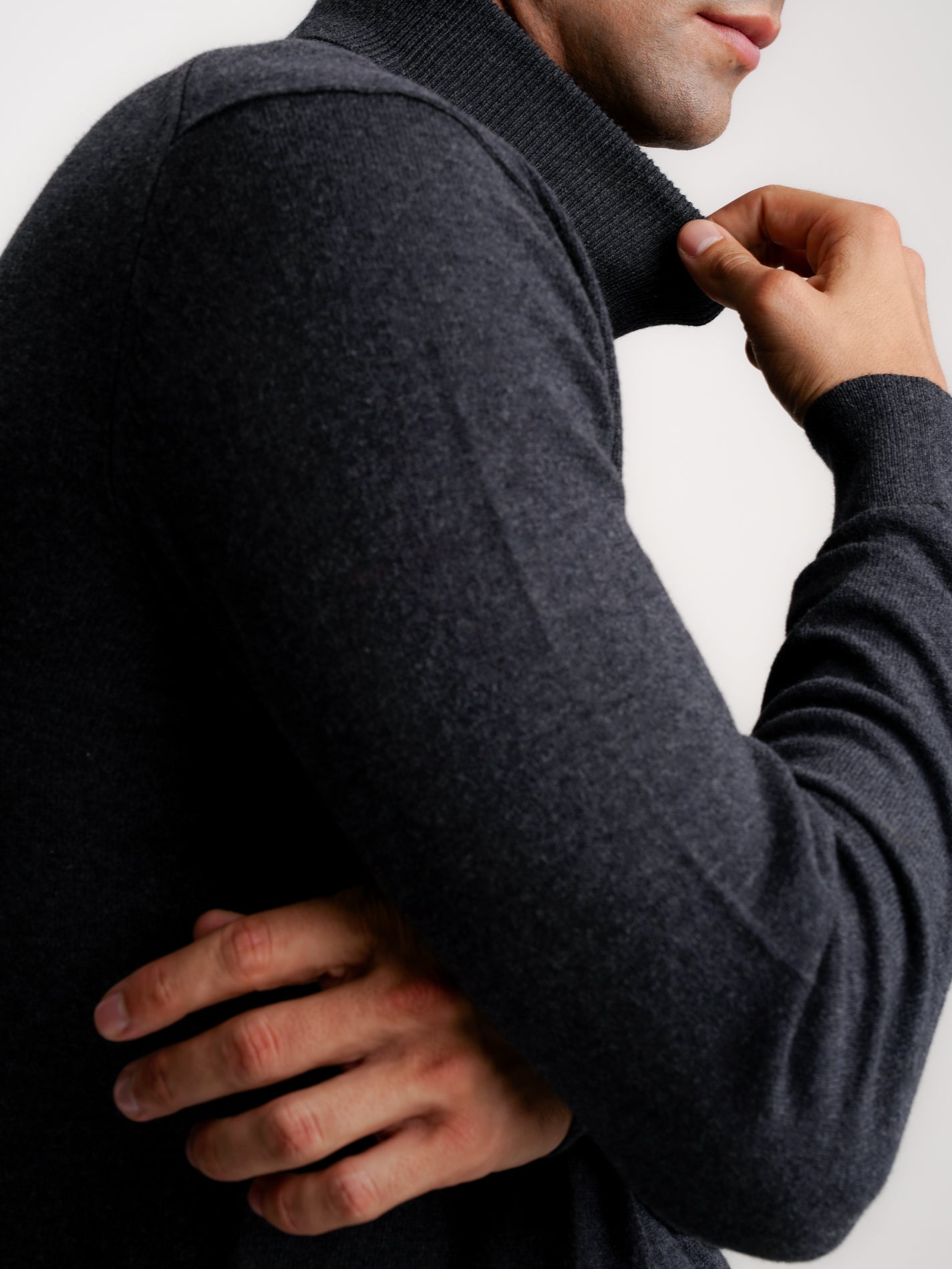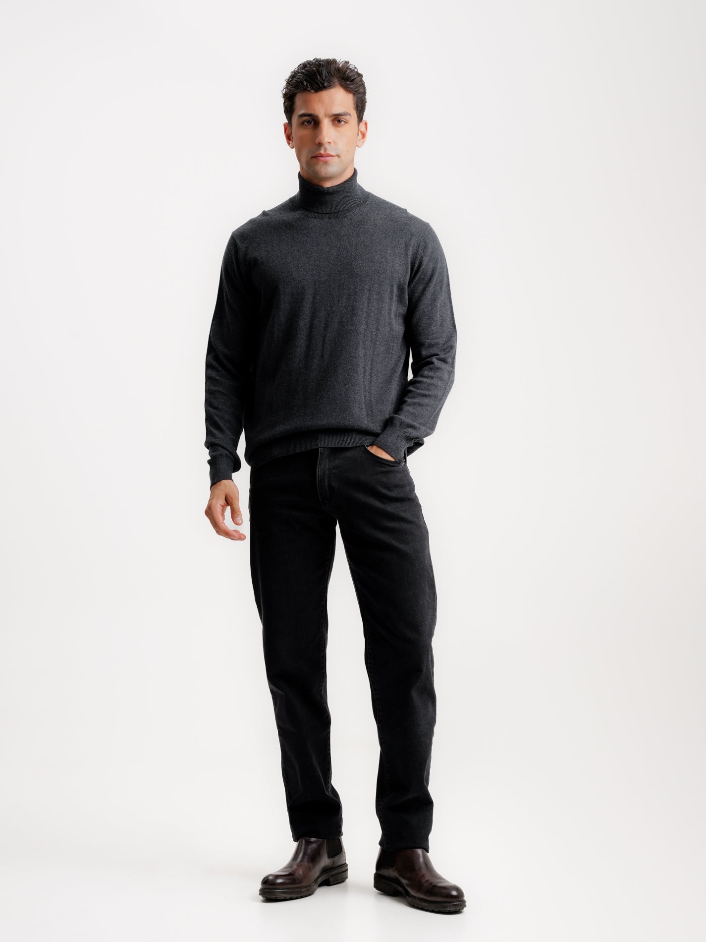 Suéter liso de cachemira fina negra sin logotipo ni bolsillo