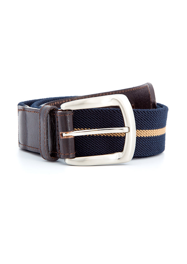 Cinturón elástico trenzado de hombre de color azul oscuro. Pieza muy versátil para combinar con varias opciones de pantalón.