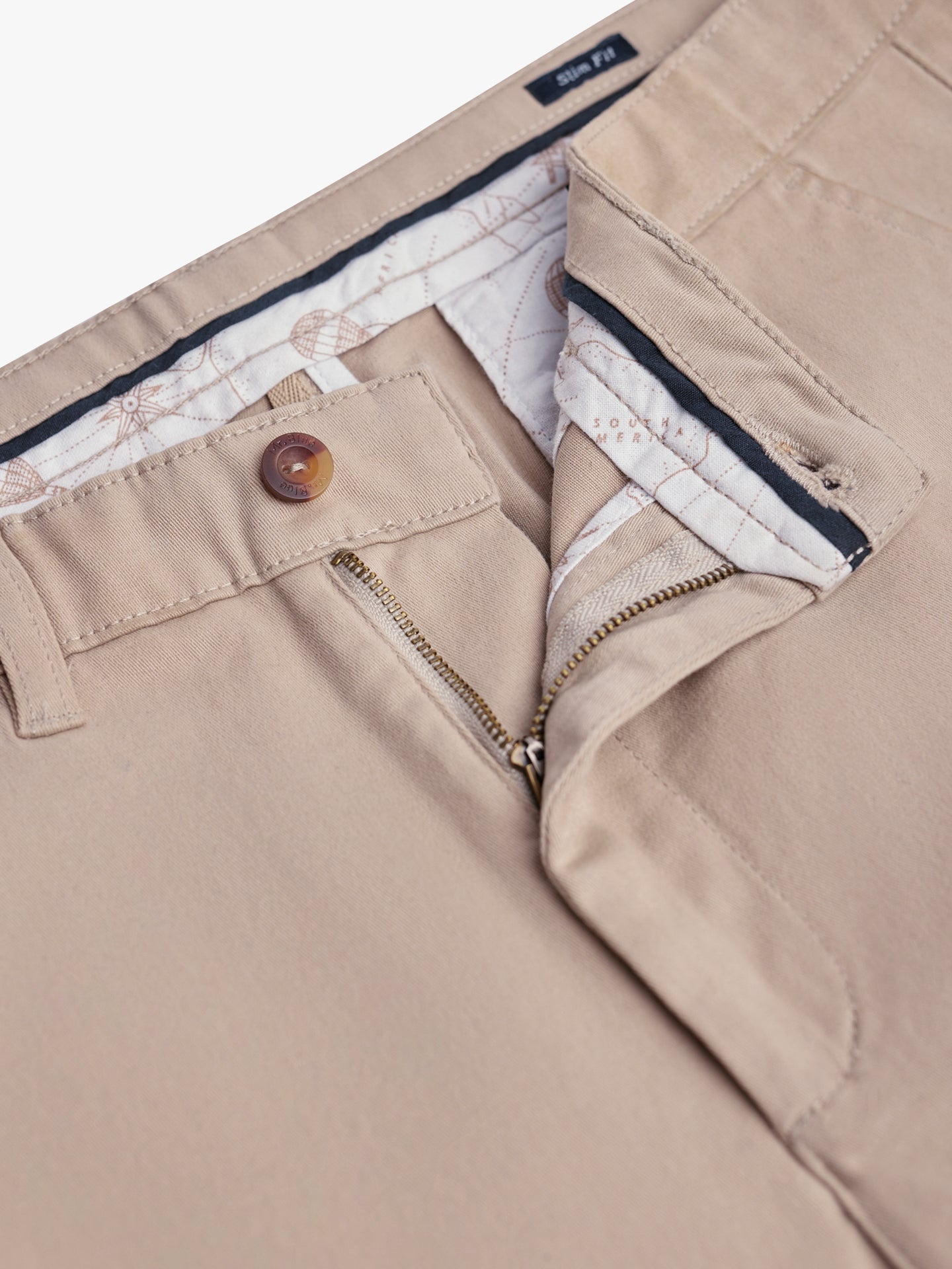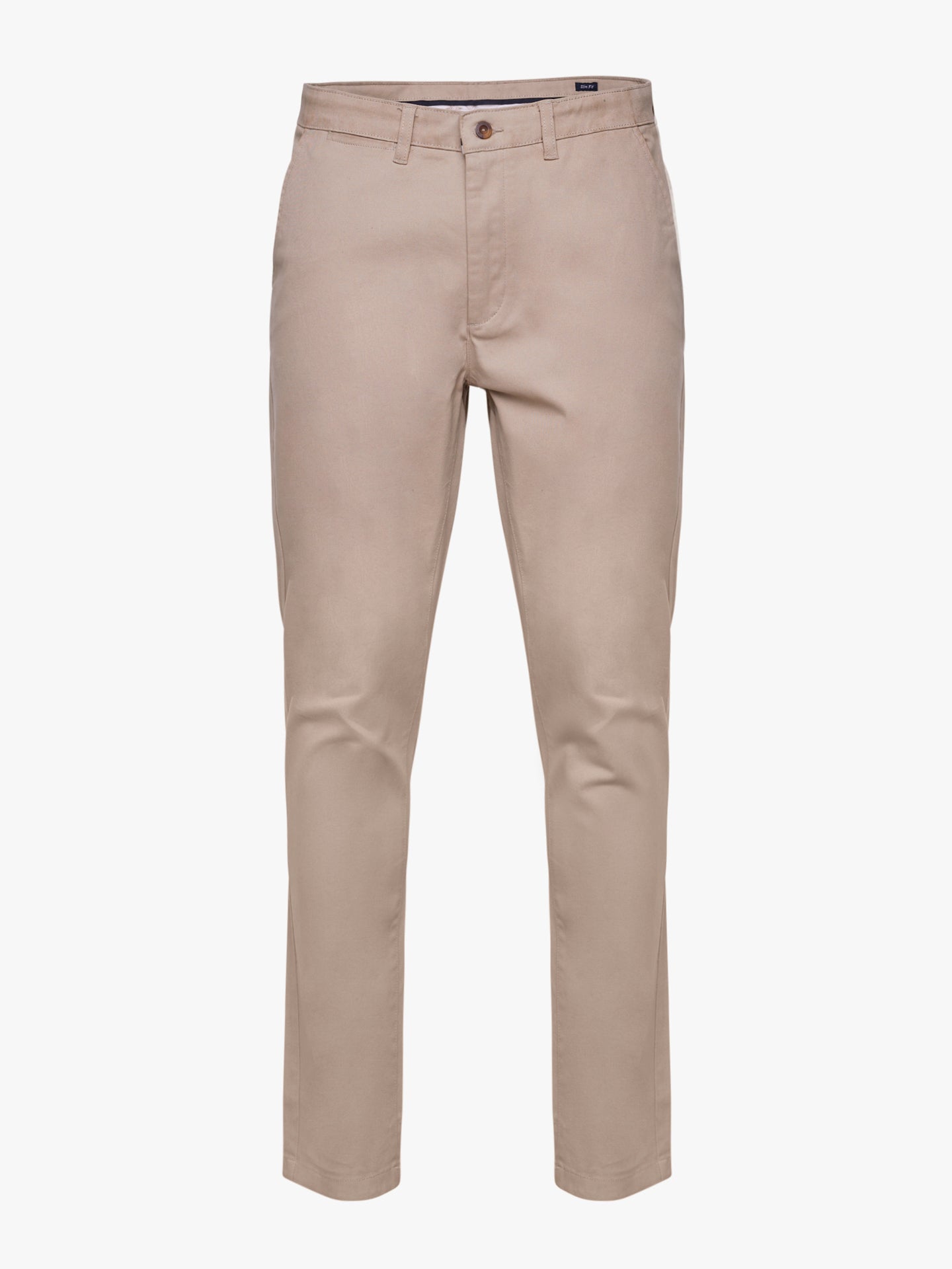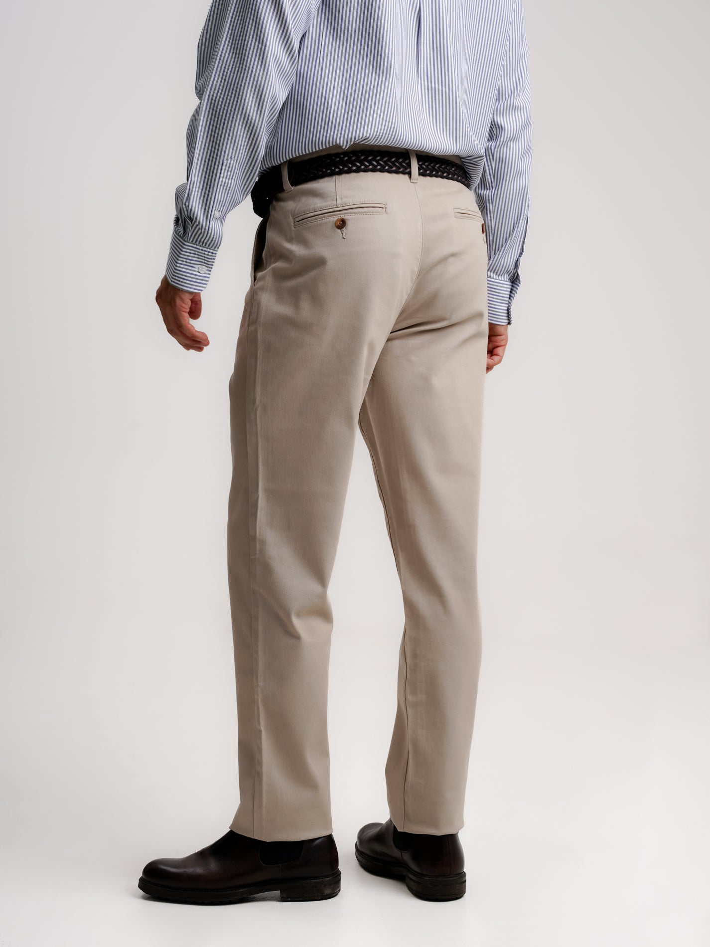 Pantalones chinos de algodón liso beige de sarga de corte entallado