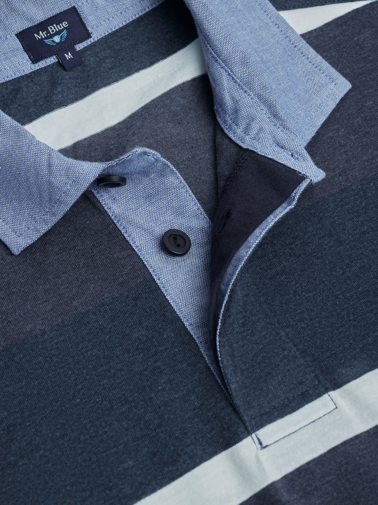Camiseta de rugby de algodón azul a rayas con logo y corte regular