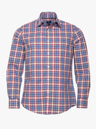 Camisa azul ajustada para hombre con cuadros rojos y blancos