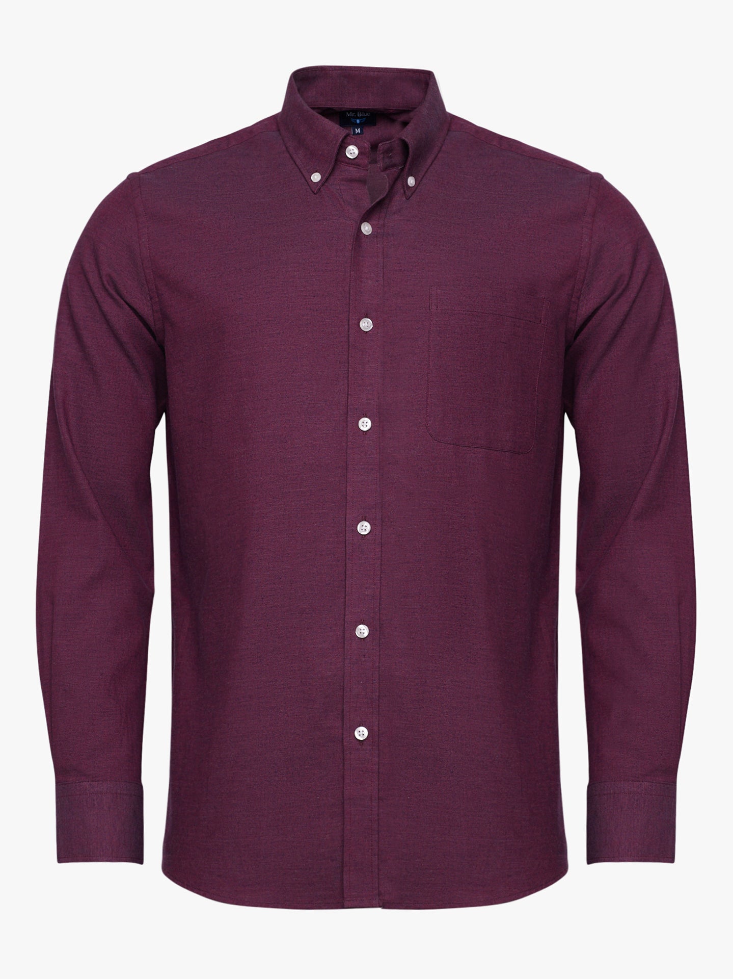 Camisa Oxford de corte regular burdeos de algodón liso con bolsillo