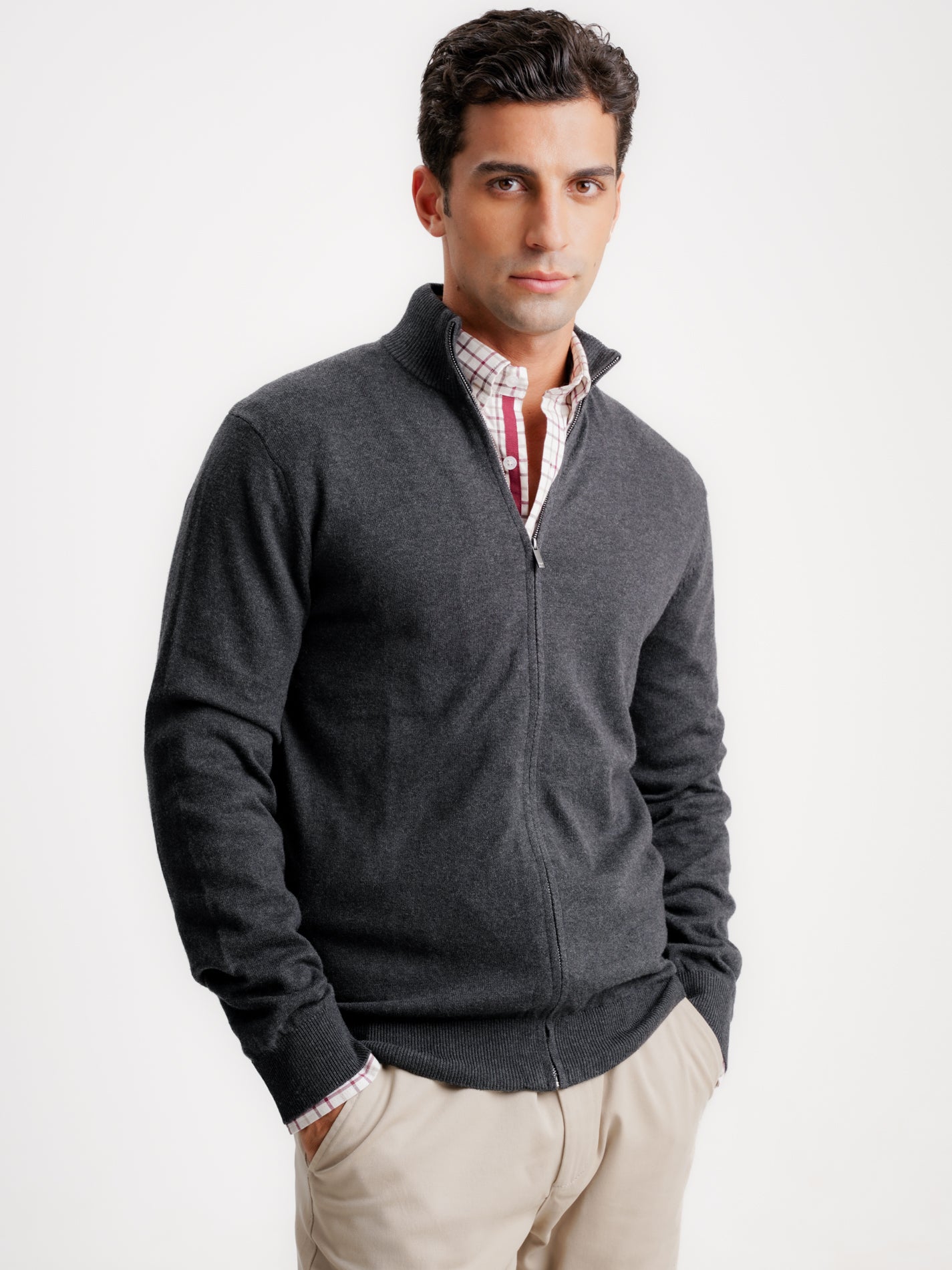 Jersey de cachemira fina gris liso sin logotipo y sin bolsillo