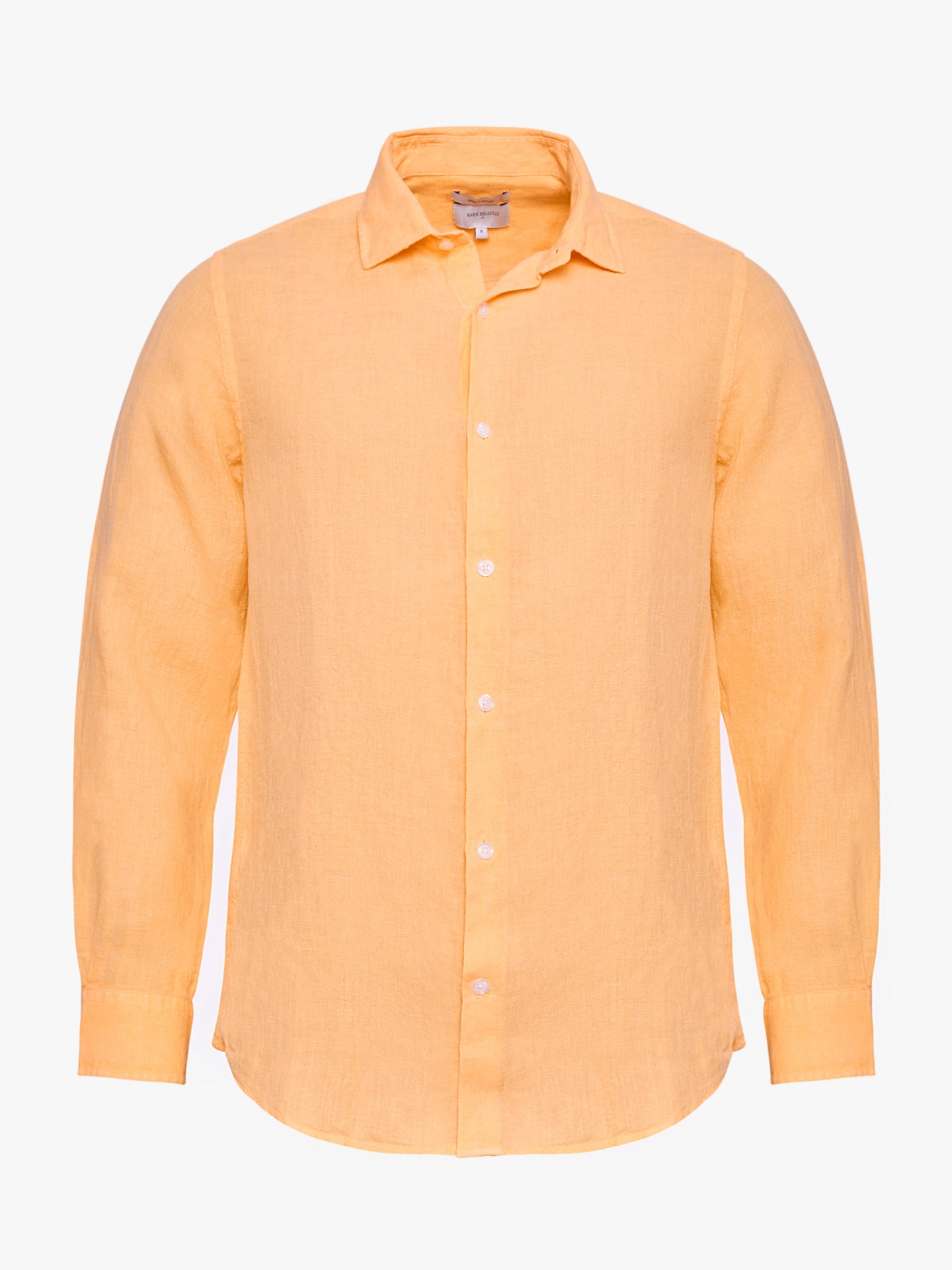 Camisa de Lino Verde Entallada Manga Larga Sin Logo y Sin Bolsillo Lisa