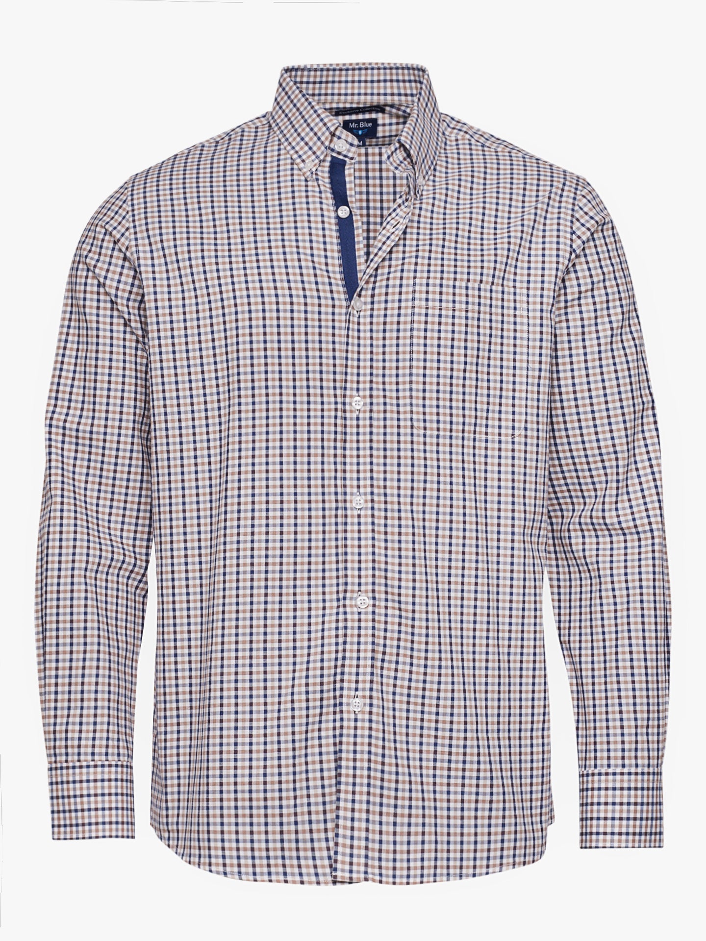 Camisa Vaiela de algodón beige a cuadros con corte regular y bolsillo
