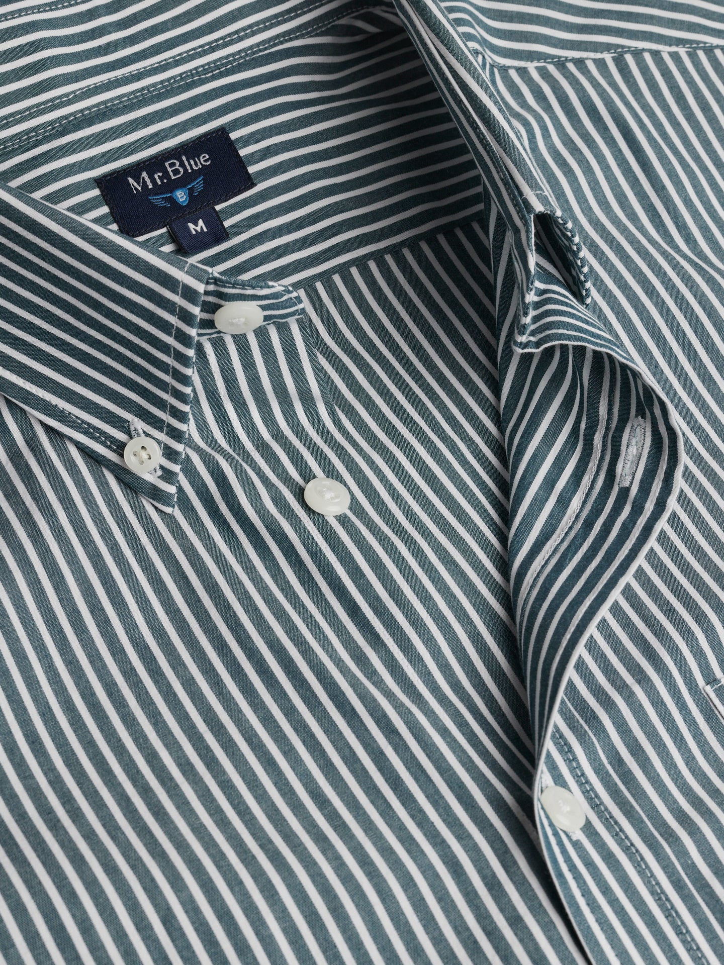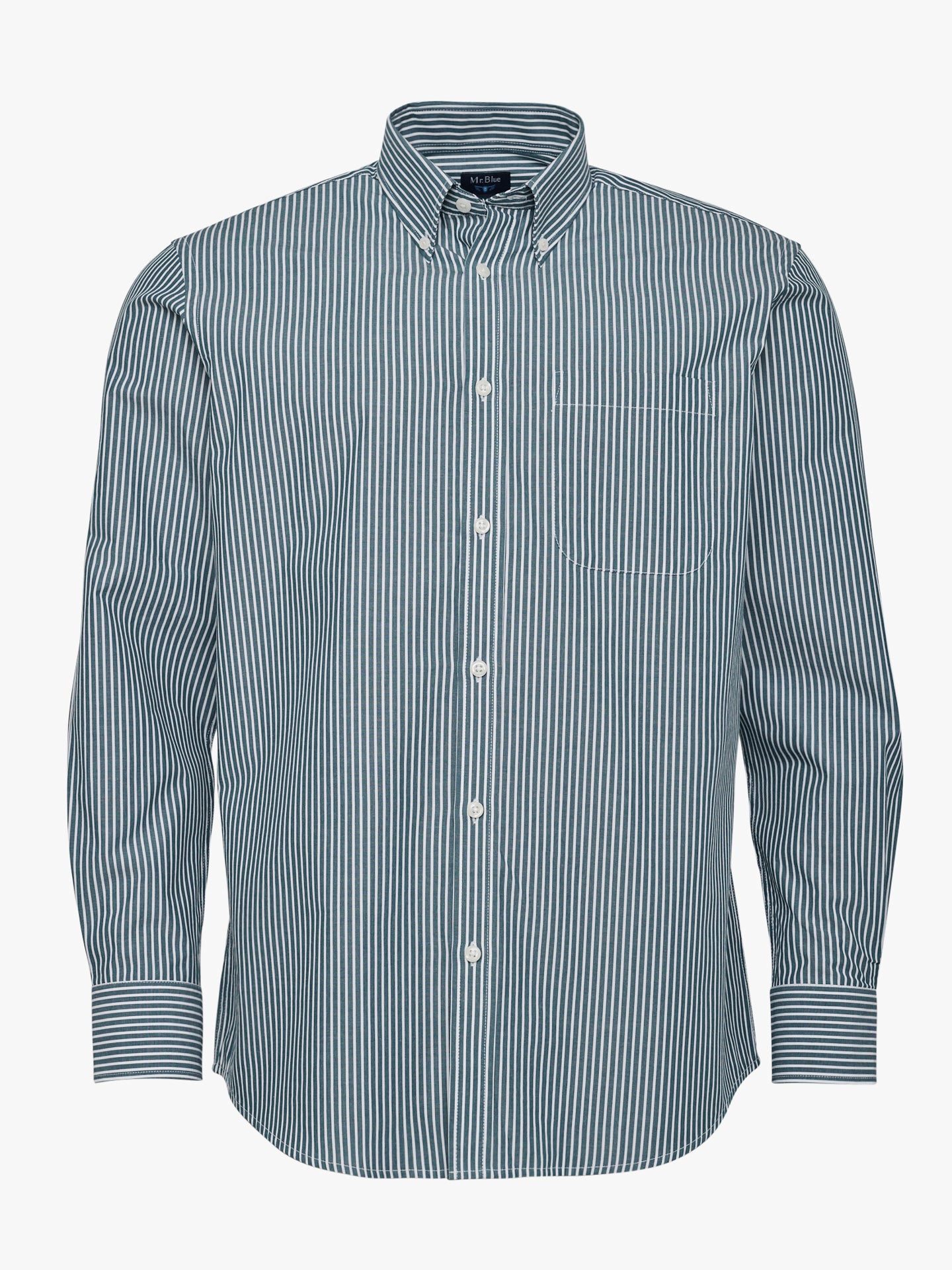 Camisa de popelina verde de manga larga y corte regular con bolsillo a rayas