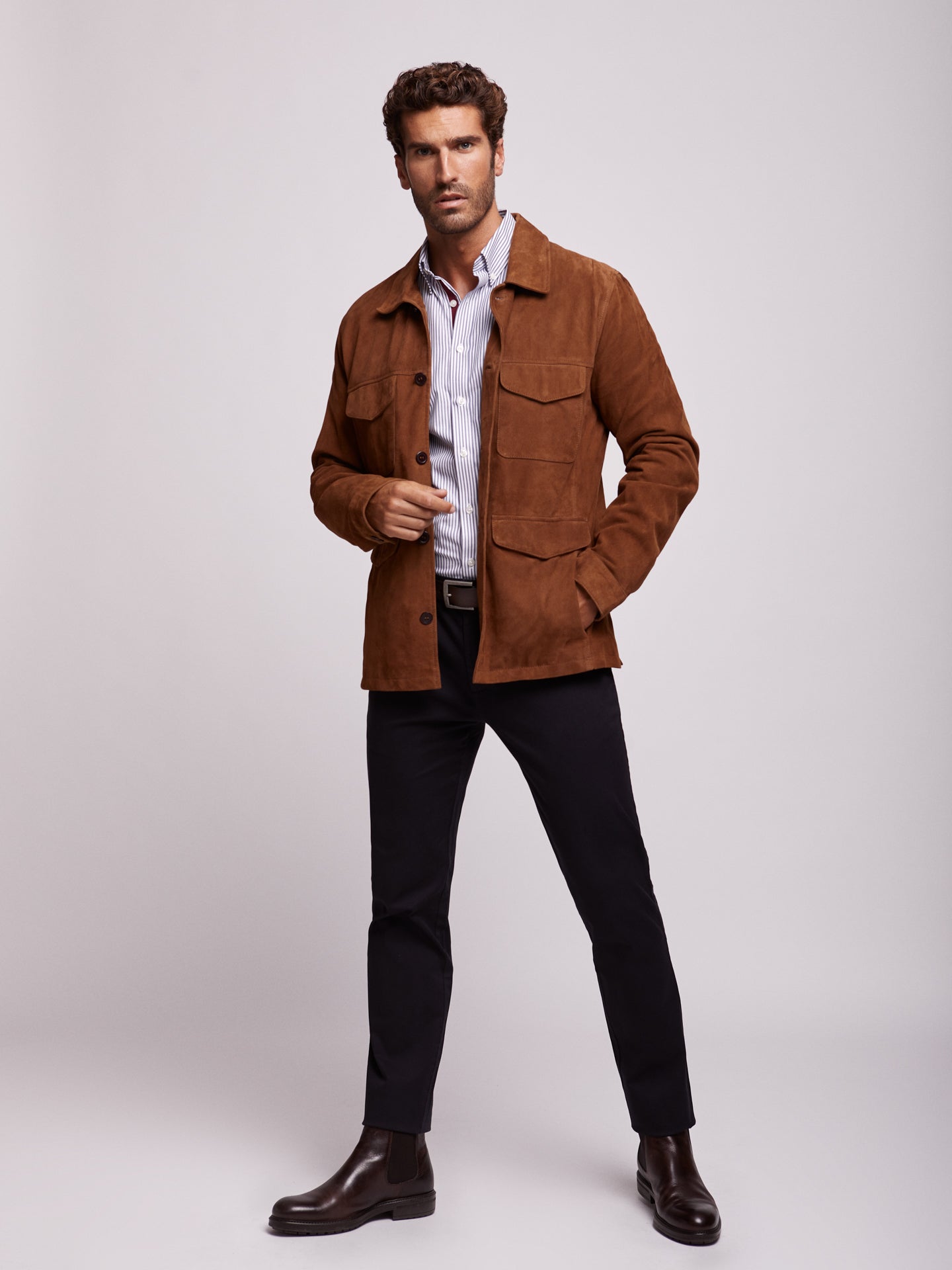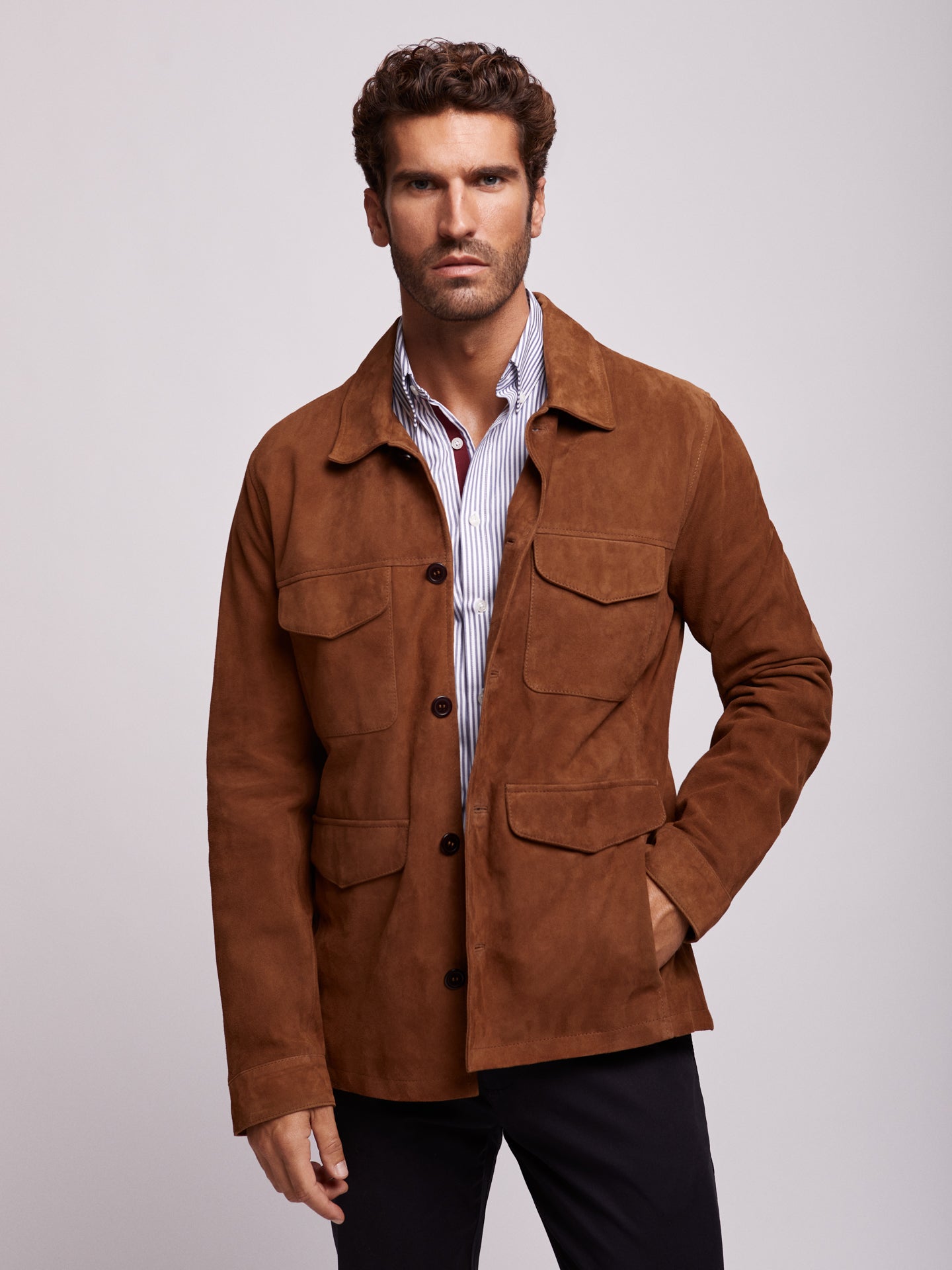Chaqueta de cuero marrón oscuro