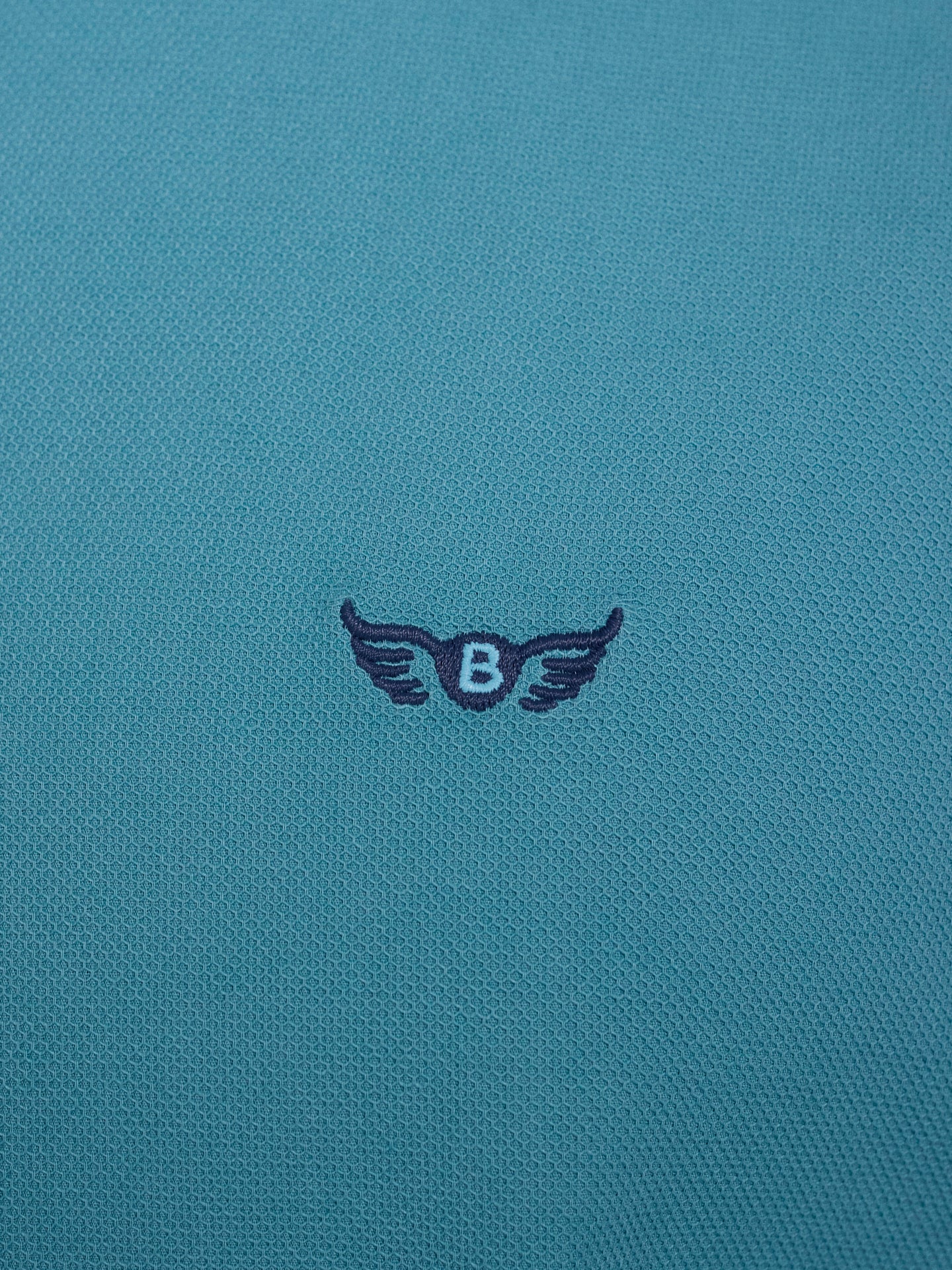 Camisa de algodón azul de manga larga y corte regular con logotipo liso