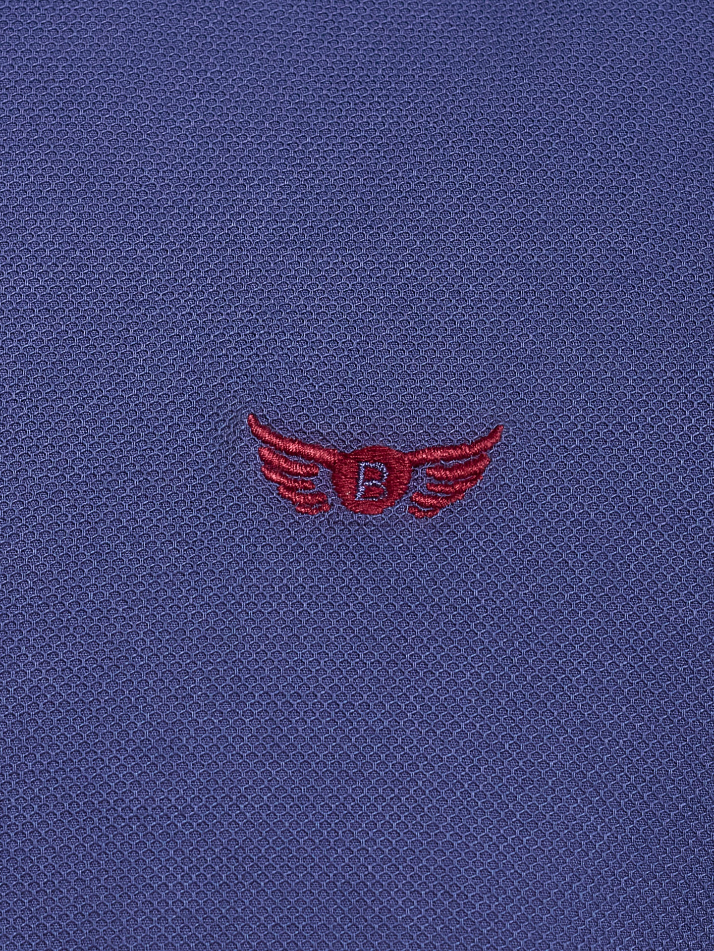 Camisa de algodón azul de manga larga y corte regular con logotipo liso