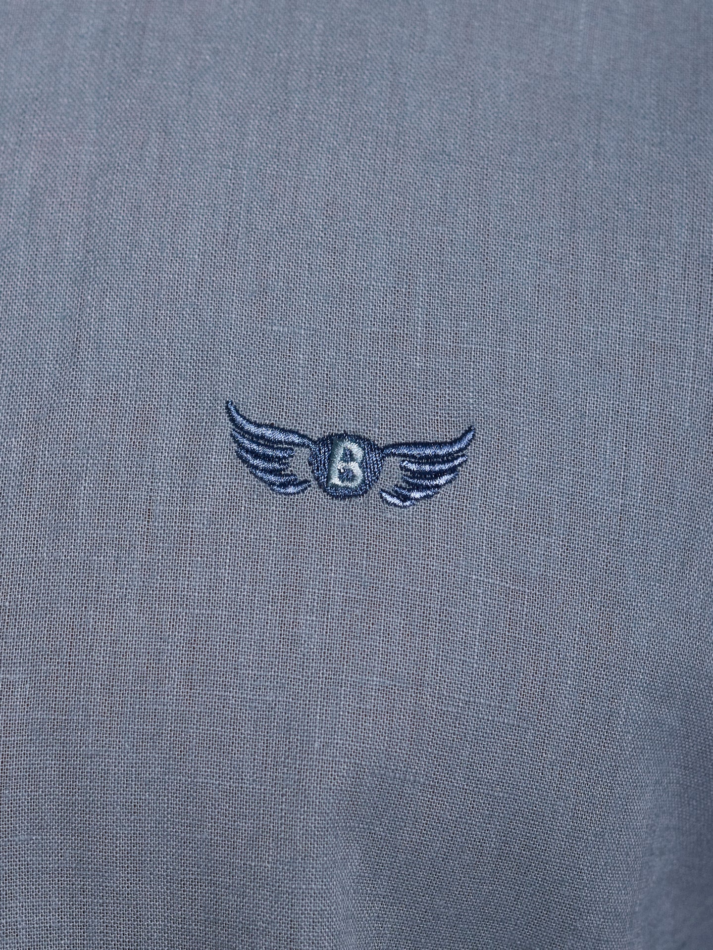 Camisa de lino azul de manga larga y corte regular con logotipo liso