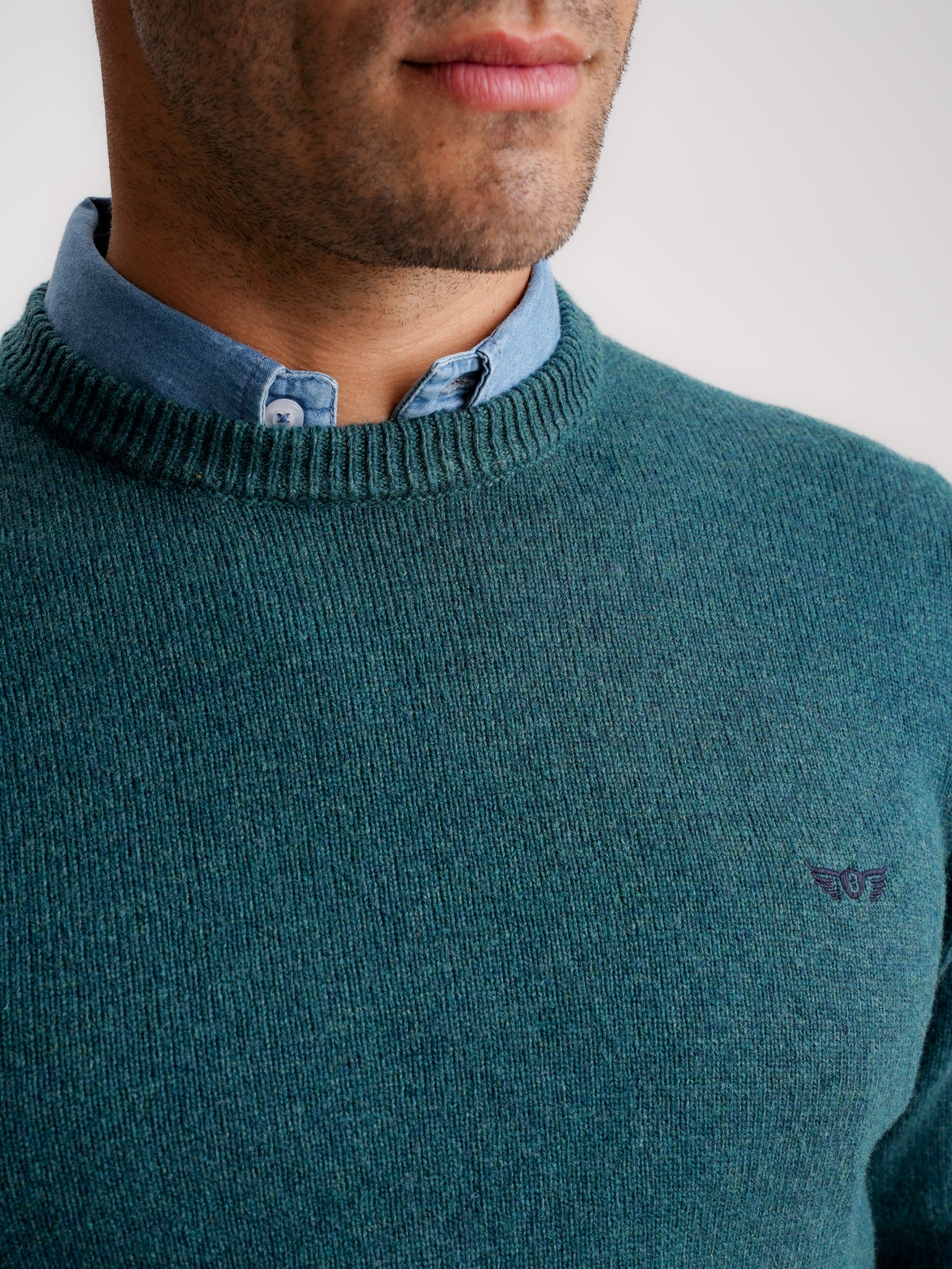 Suéter de lana gruesa verde liso con logotipo