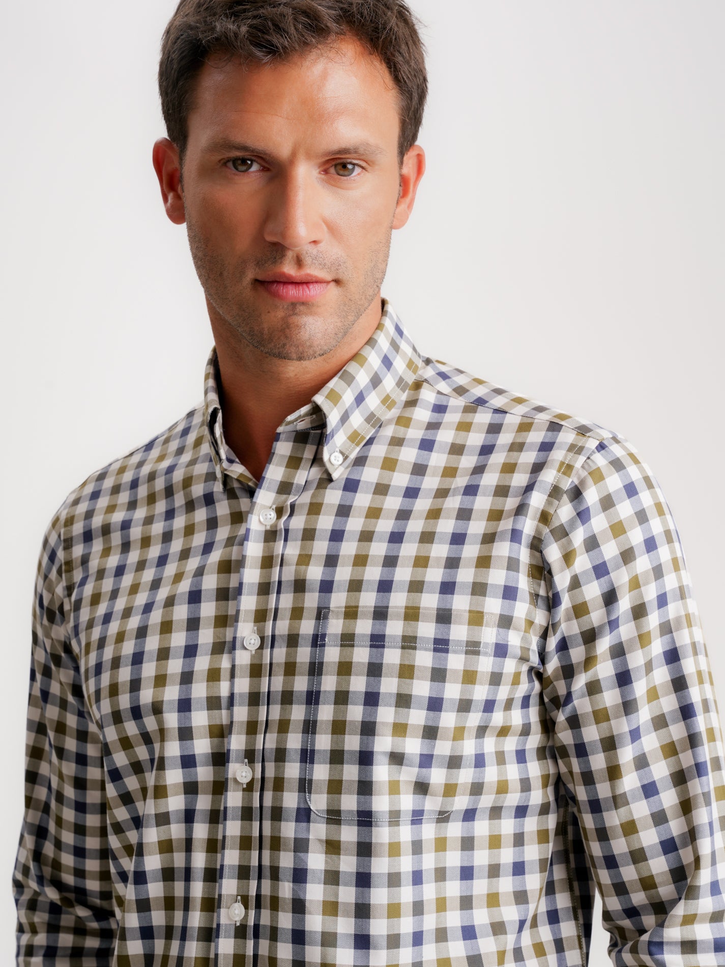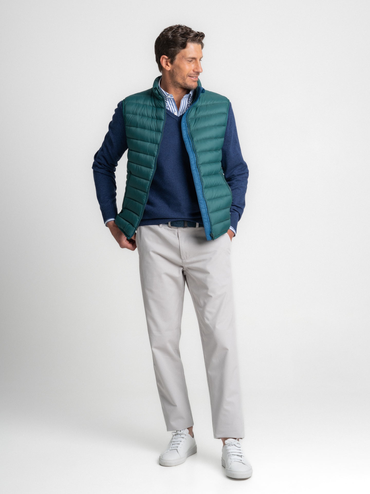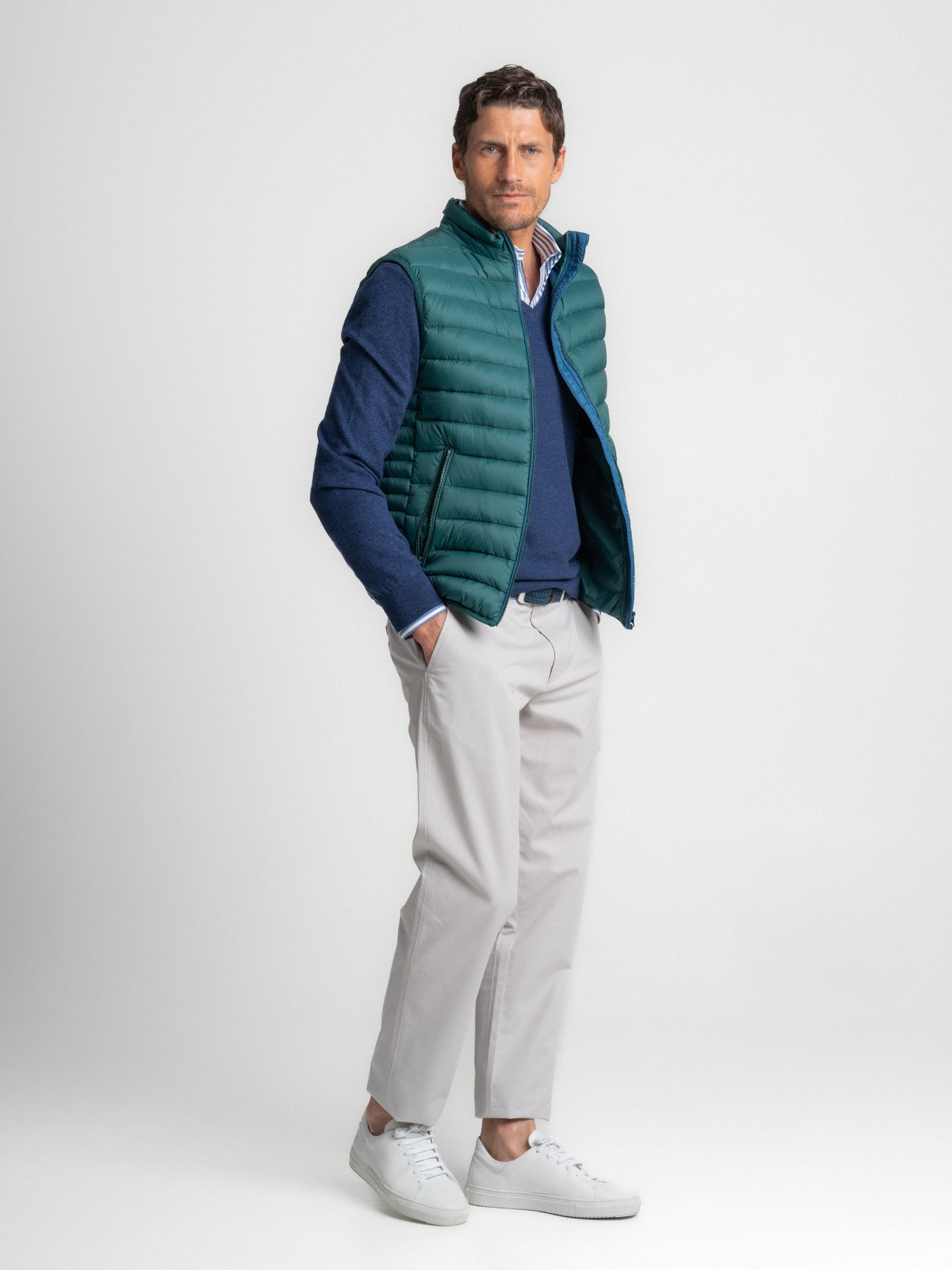Pantalones chinos de sarga lisa de corte entallado con detalle