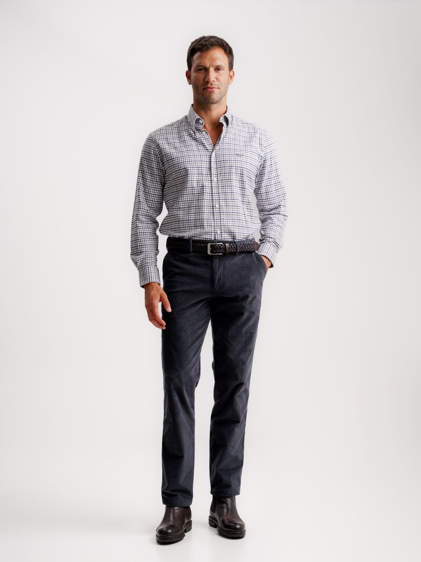 Camisa Oxford gris de corte entallado