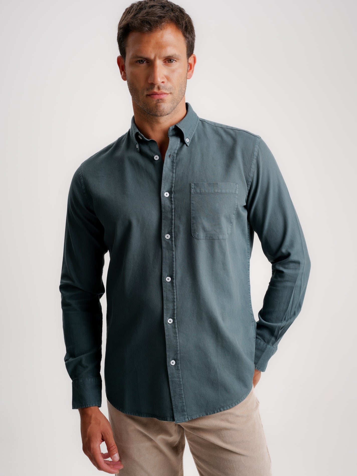 Camisa verde de manga larga de corte regular