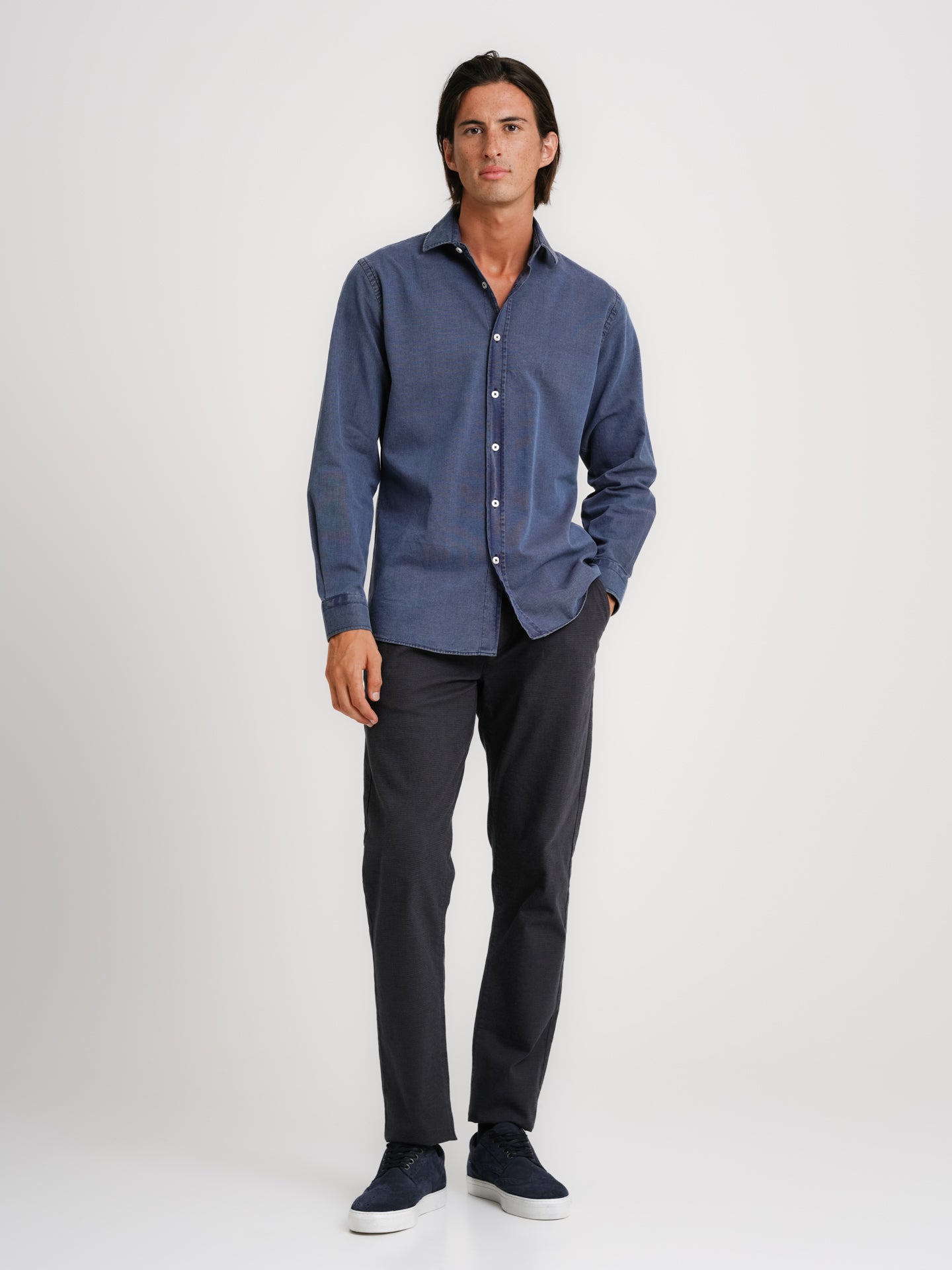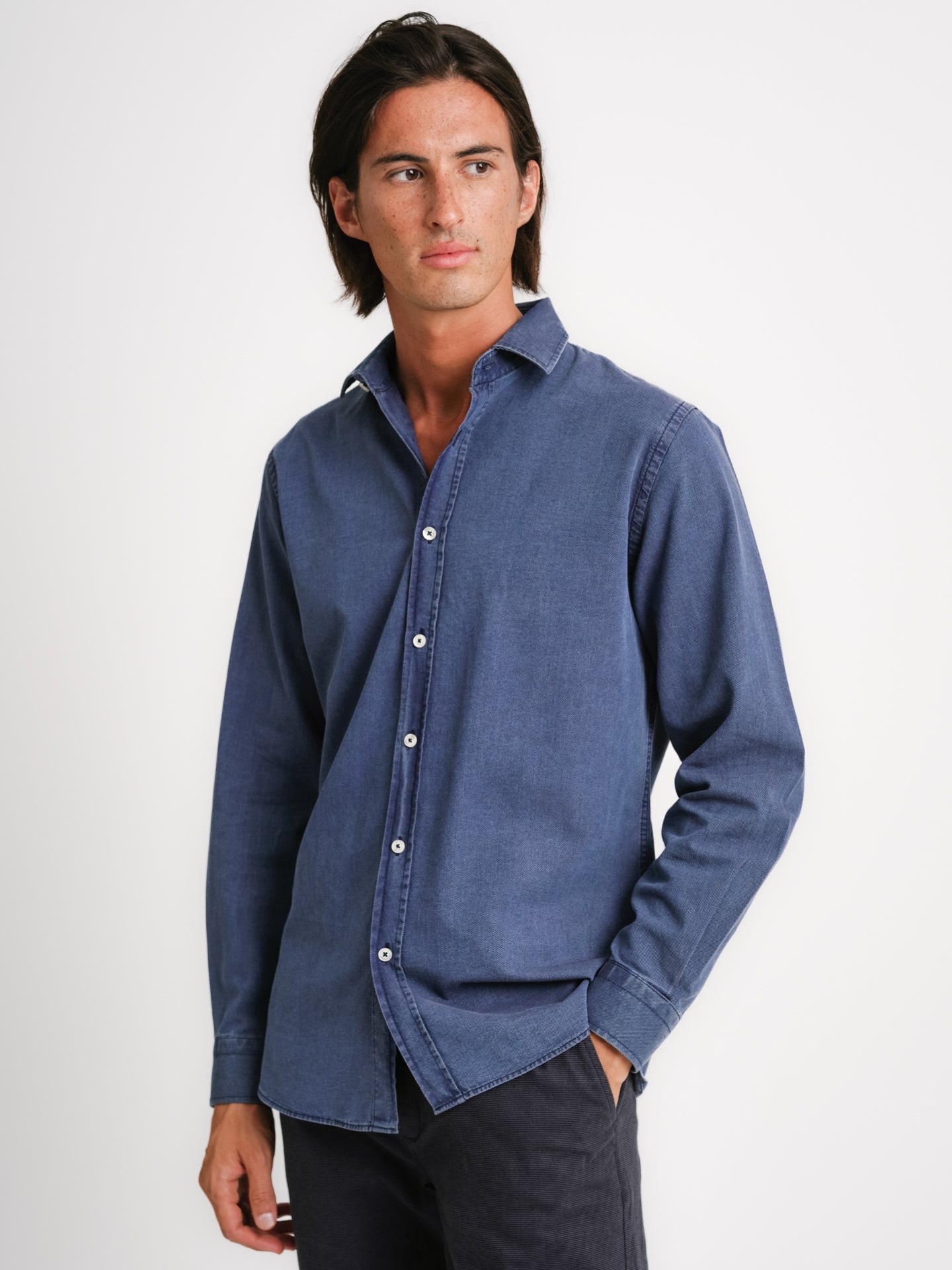 Vaqueros de tiro alto en denim azul de tencel y algodón