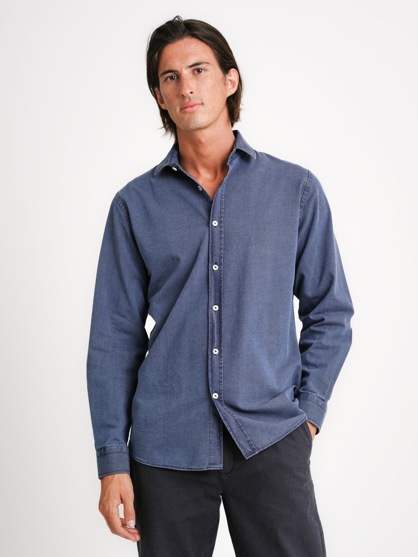 Vaqueros de cintura alta con lavado a la piedra en color azul oscuro