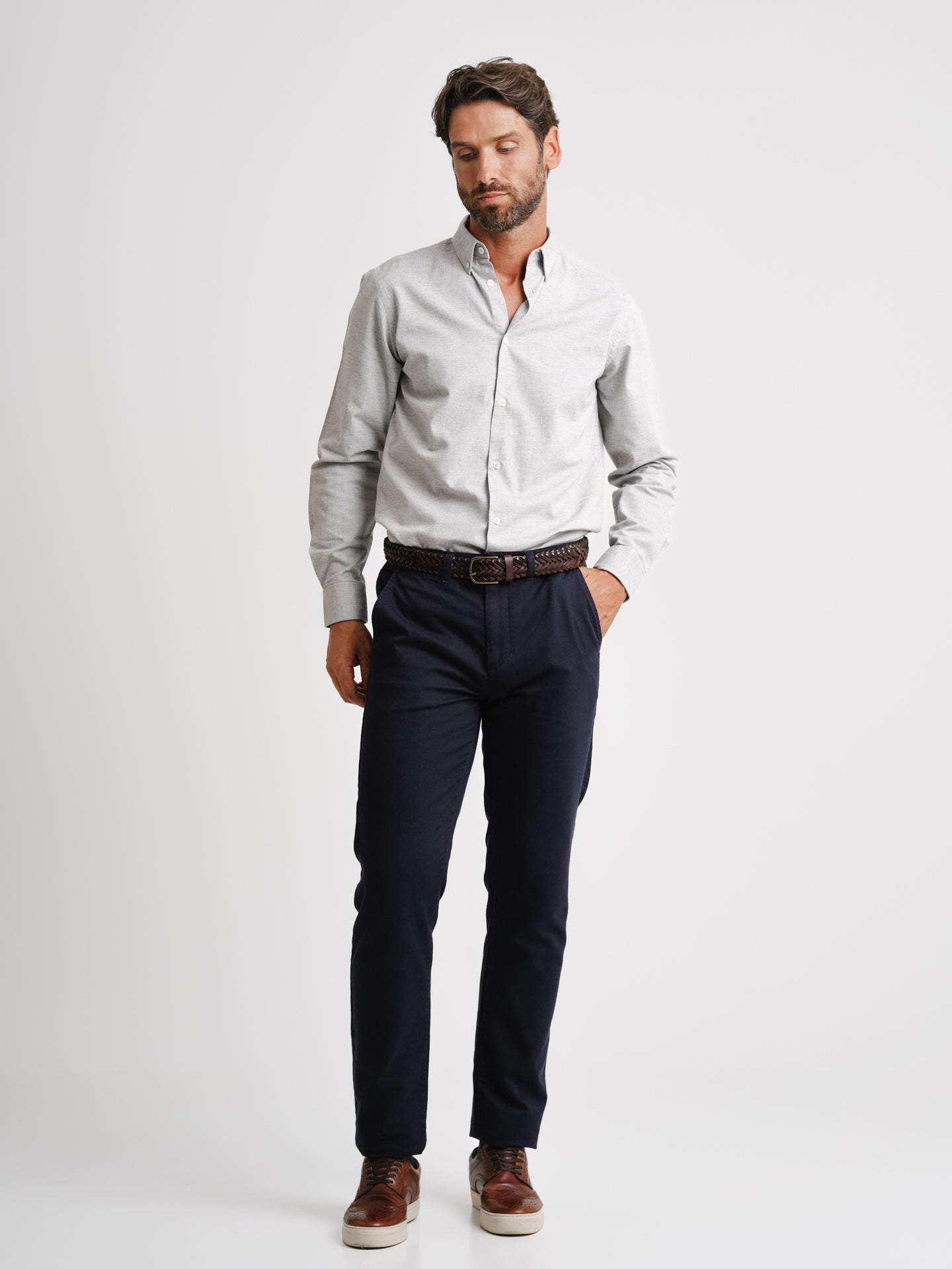 Camisa Vaiela Slim Fit Gris Algodón Estándar