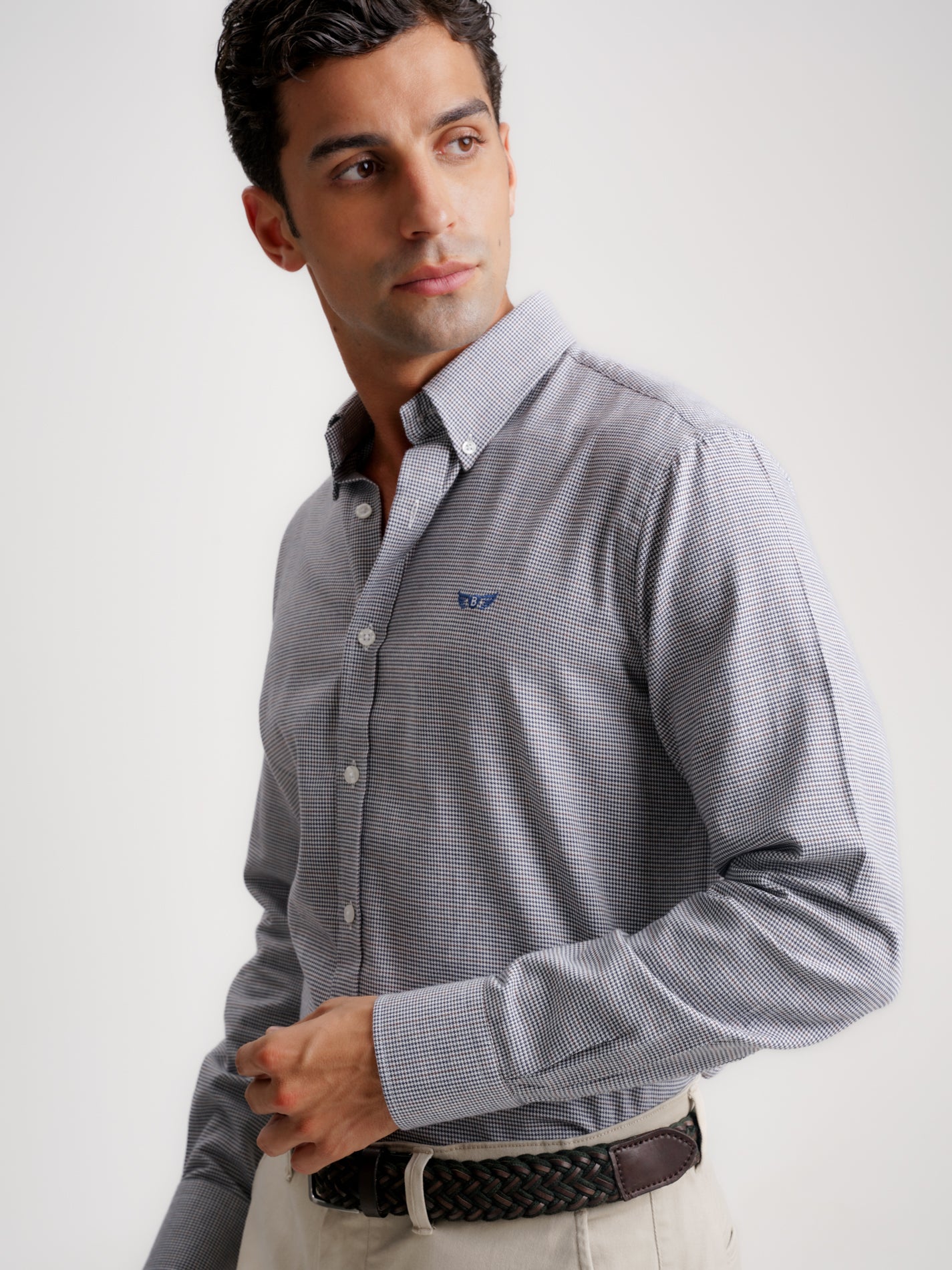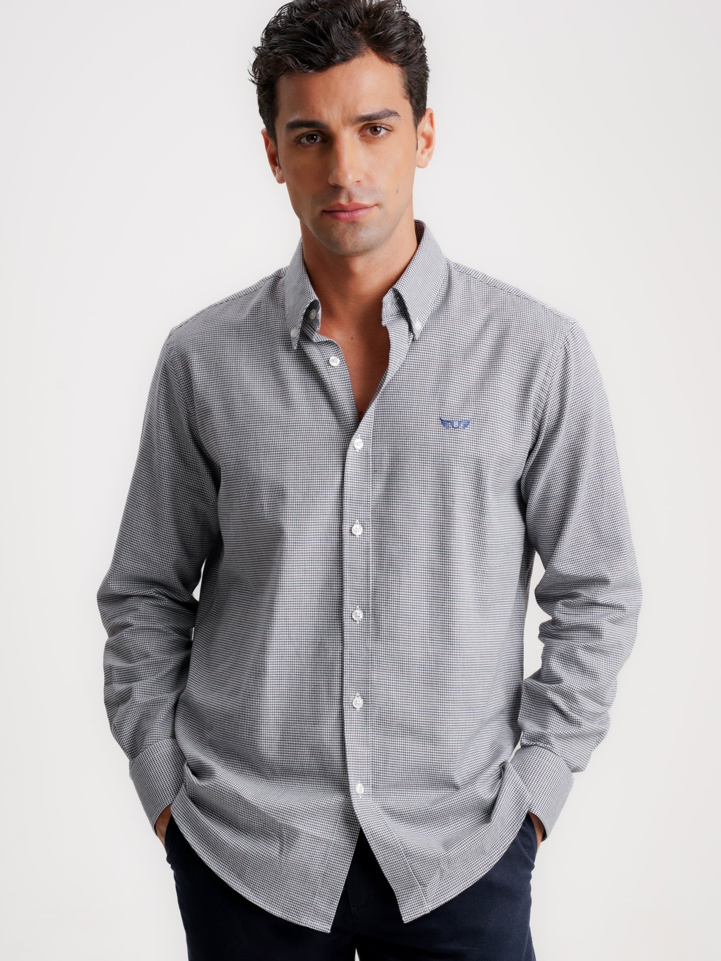 Camisa de manga larga de corte regular azul Vaiela con logotipo a cuadros