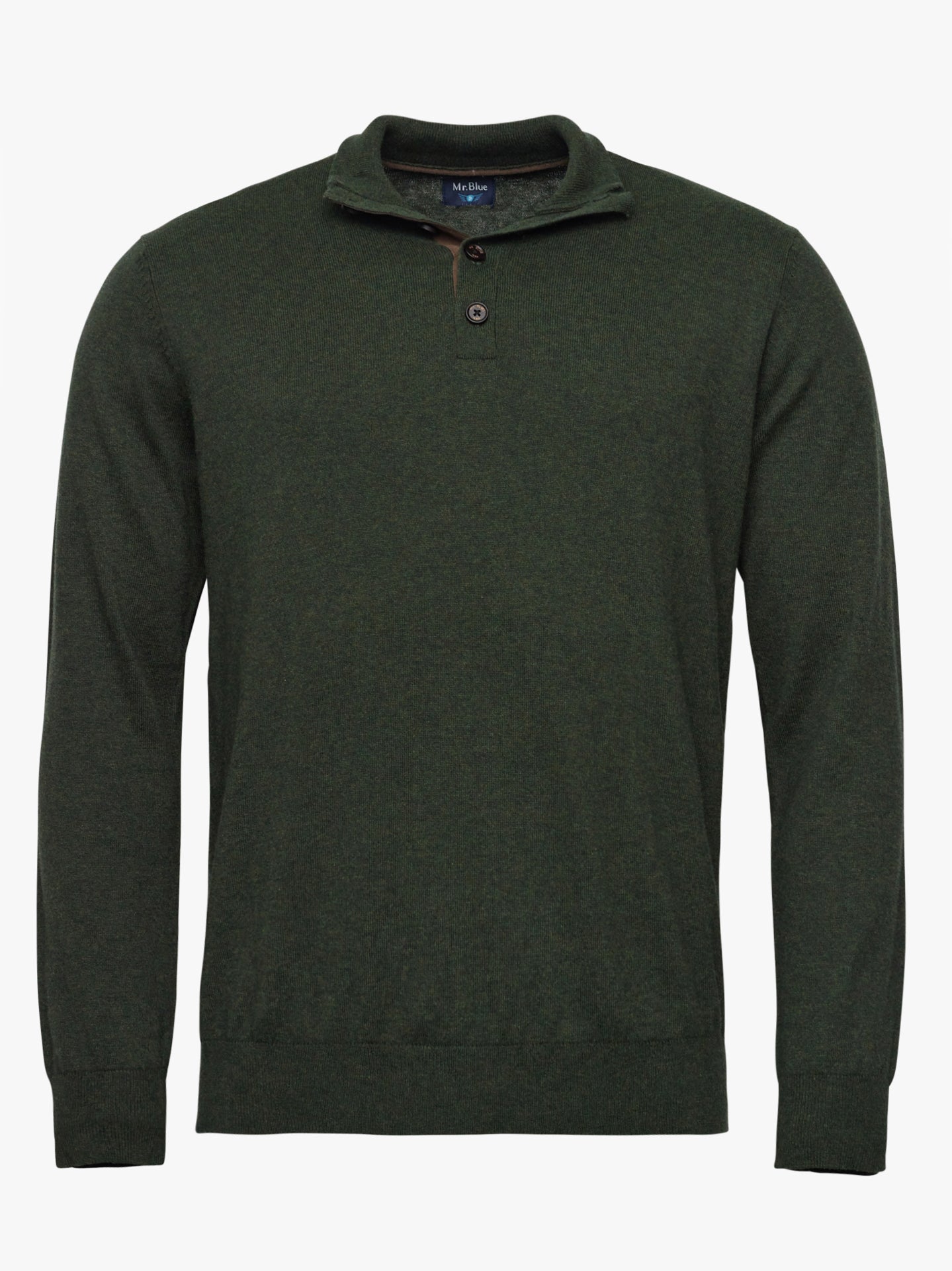 Jersey de lana merino fina verde liso sin logotipo y sin bolsillo