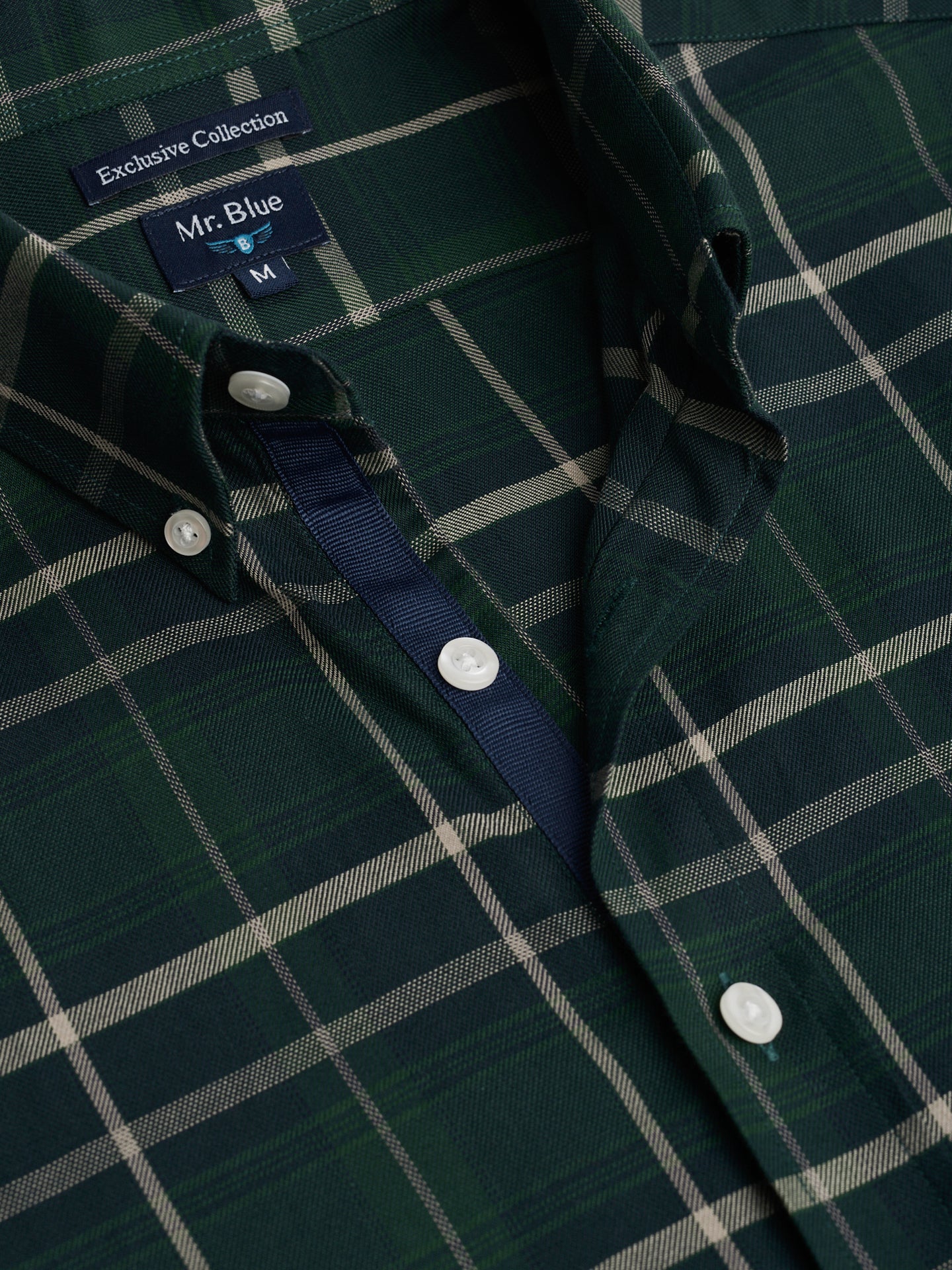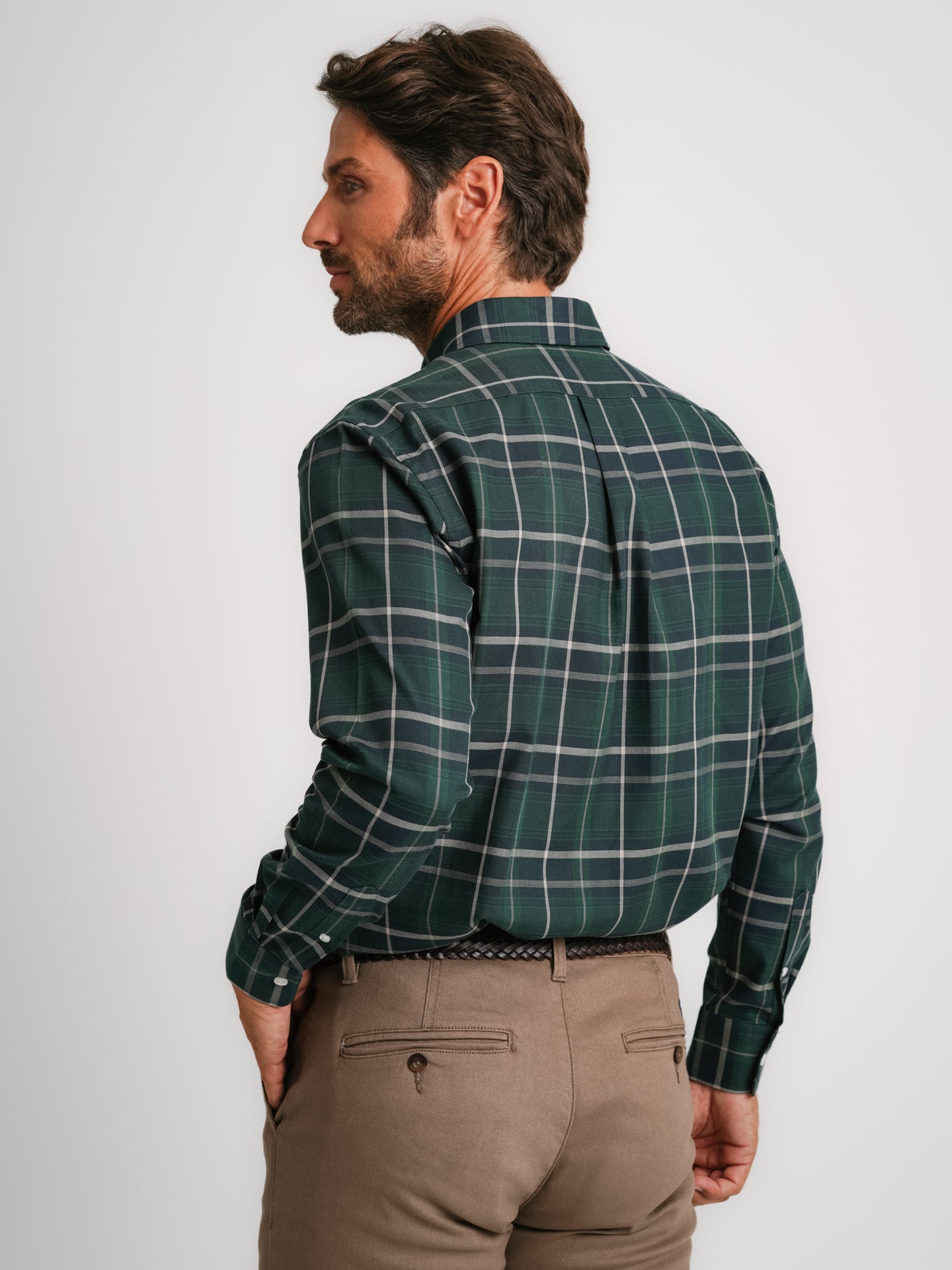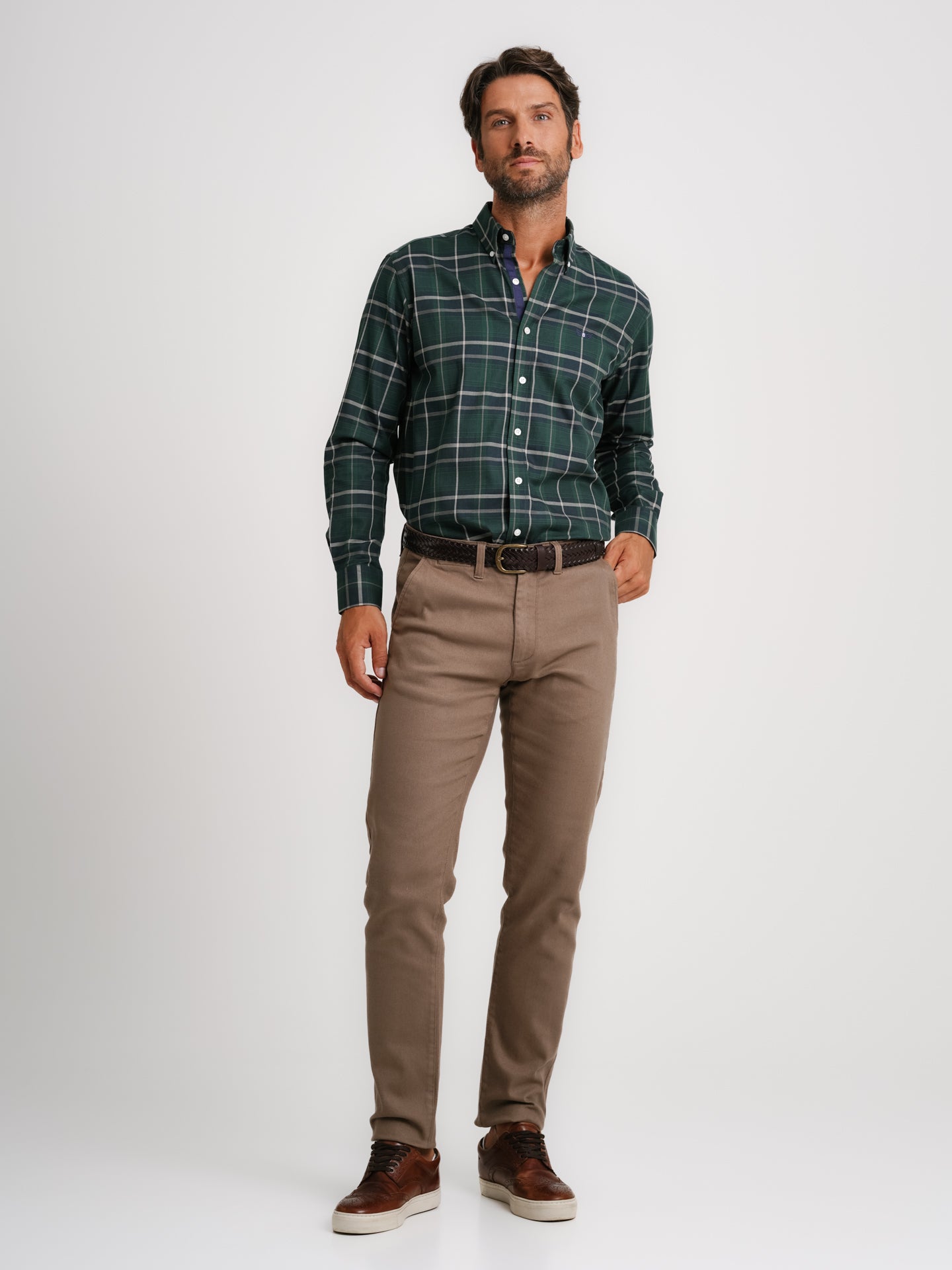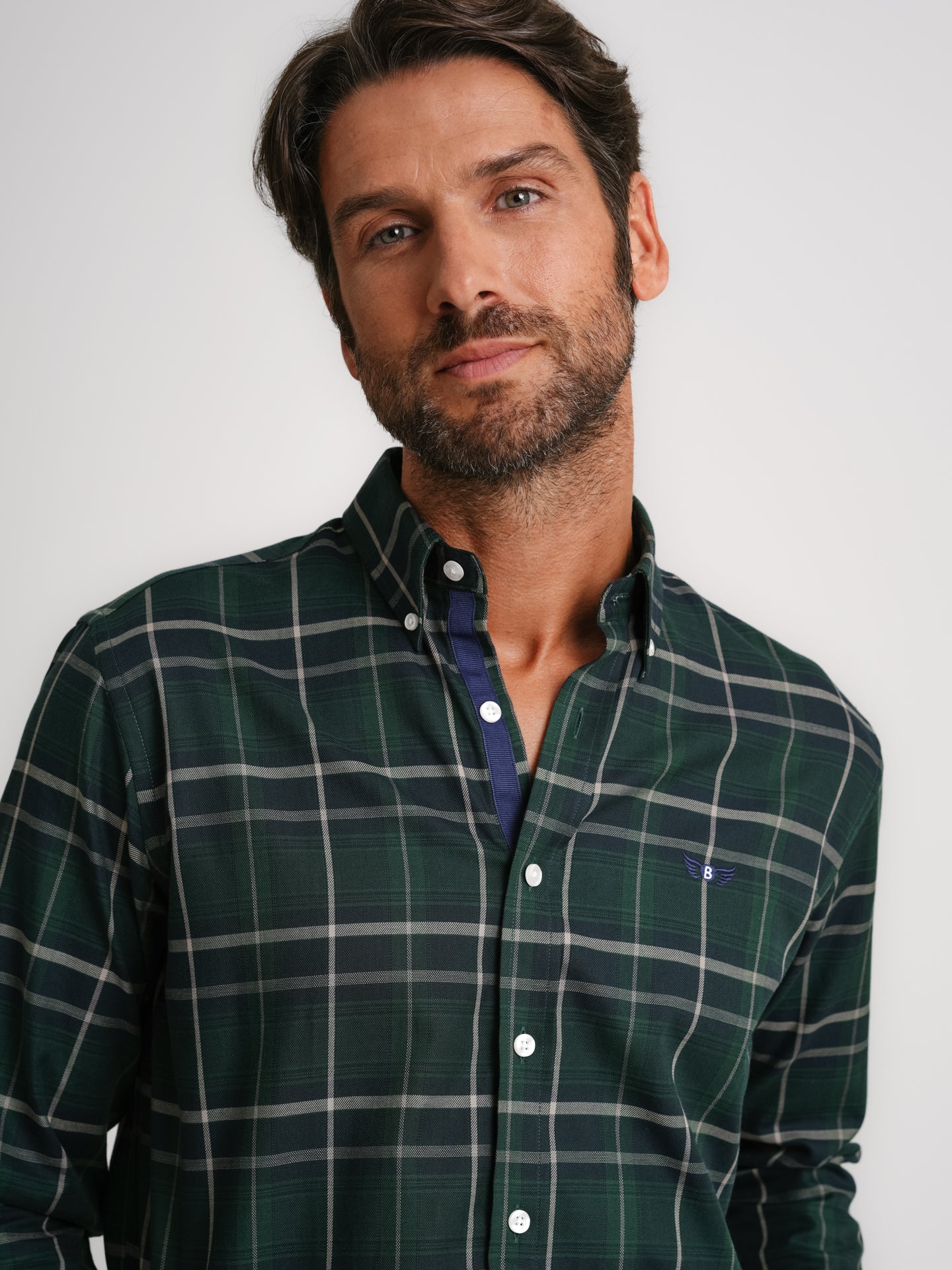 Camisa de sarga de corte regular de algodón verde a cuadros con logotipo