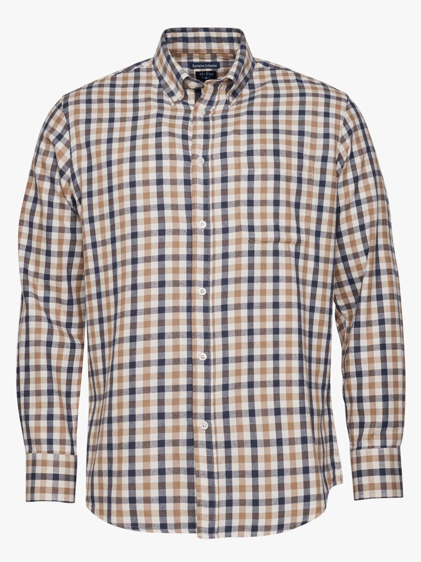 Camisa de franela de algodón beige a cuadros de corte regular