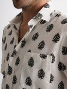 Camisa Regular Fit Linho Cinzenta Manga Curta Com bolso Com Padrão